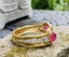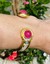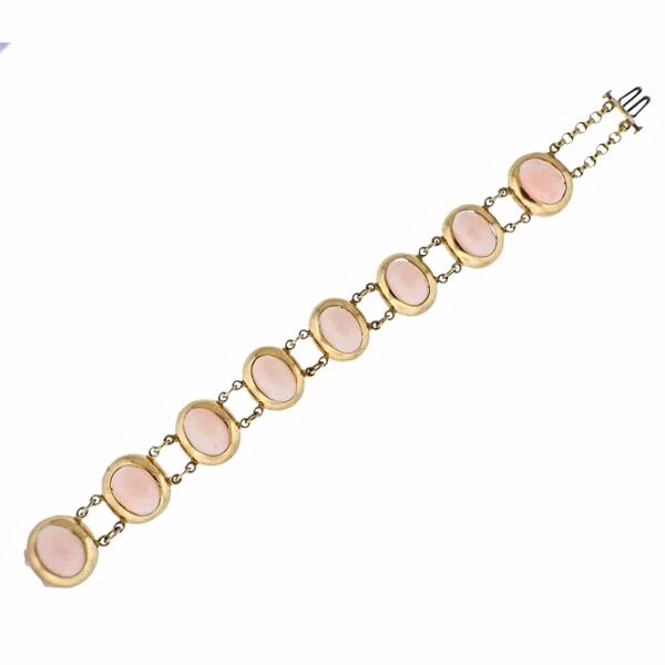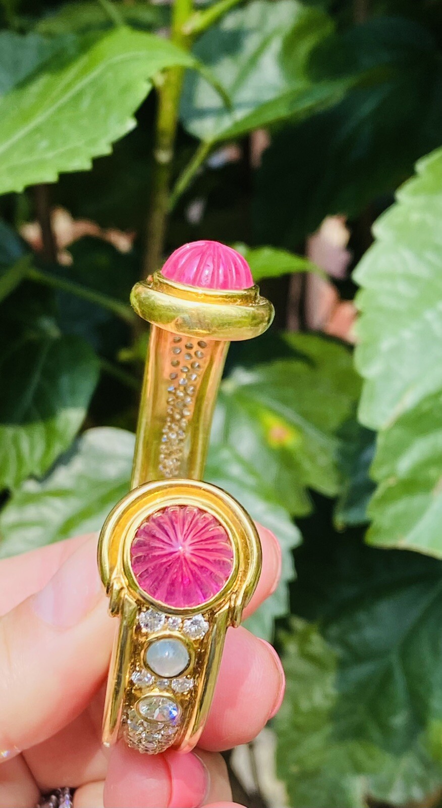 Vintage Estate Italian 18k Gold Pink Tourmaline Moonstone Diamond Cuff Bracelet