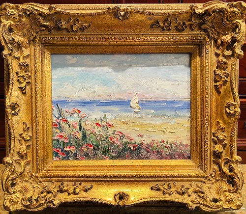 KADLIC Original Oil Painting Impressionist Seascape Impasto Gold Gilt 15" Frame