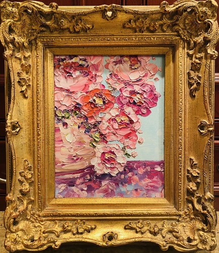 KADLIC Original Oil Painting Floral Still Life Impasto Gold Gilt 15" Frame