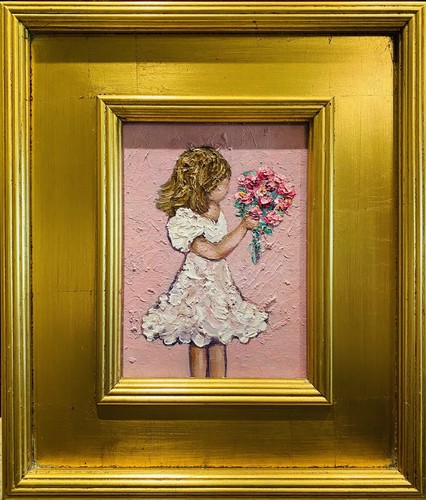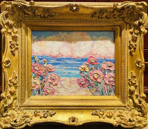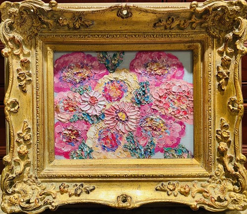 KADLIC Original Oil Painting Abstract Modern Chunky Impasto Gold Gilt 15" Frame