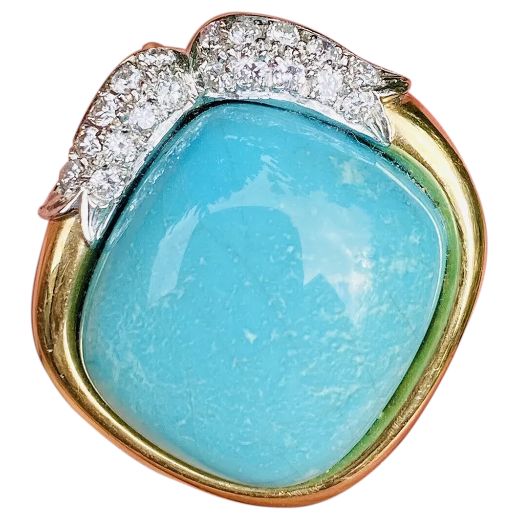 Vintage Estate 18k Gold Turquoise Diamond Necklace Pendant