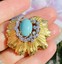 Vintage Estate 14k Gold Turquoise Diamond Necklace Pendant Brooch Pin