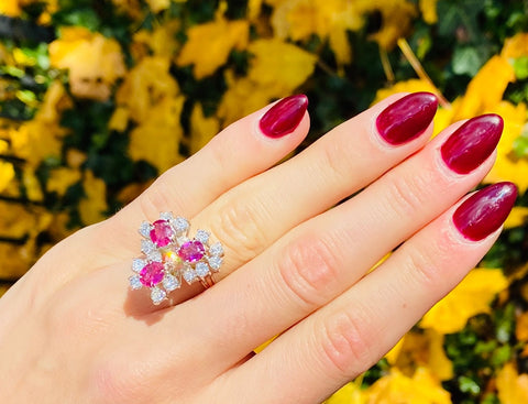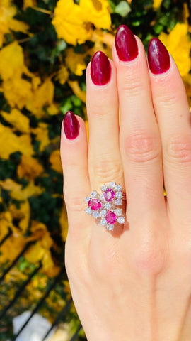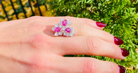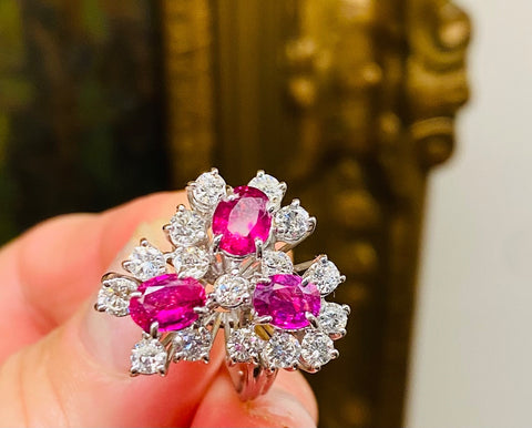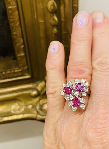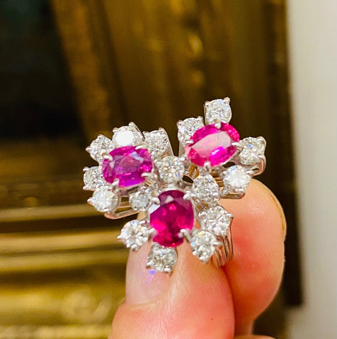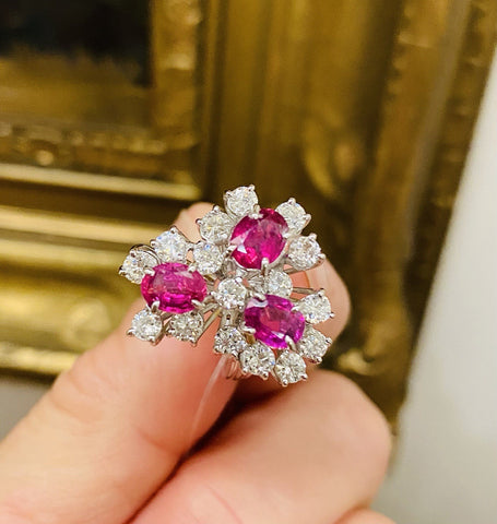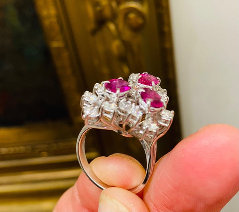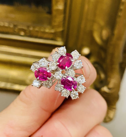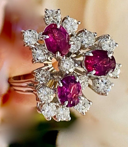 Vintage 18k Gold 3.54ct Ruby Diamond Cluster Ring