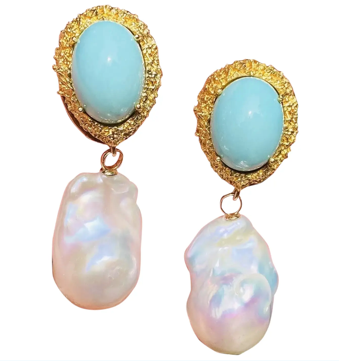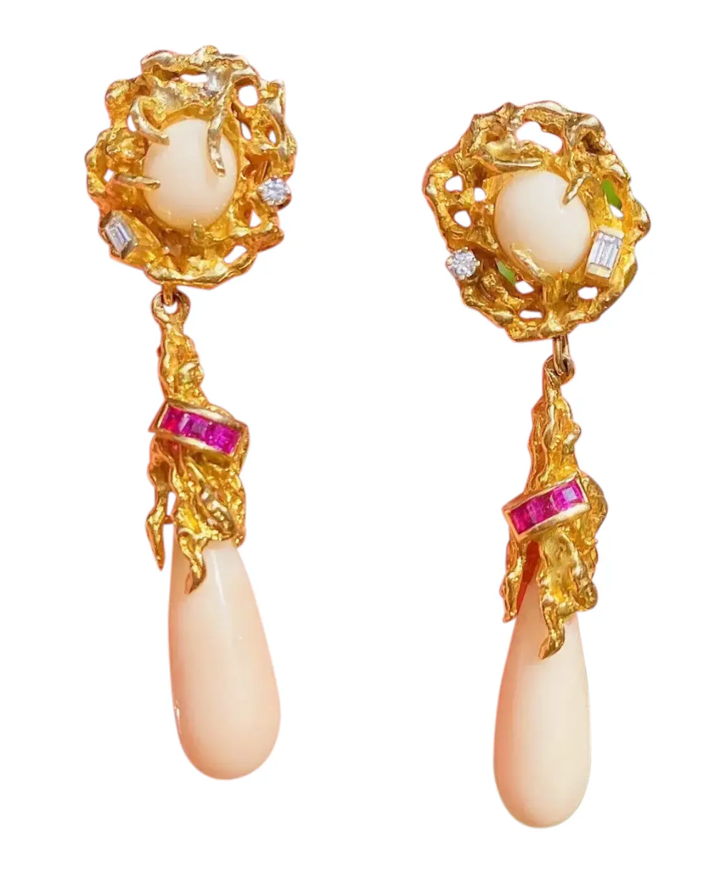The earrings measure 1.5" in length and are set with French hook wires in 18k gold.
