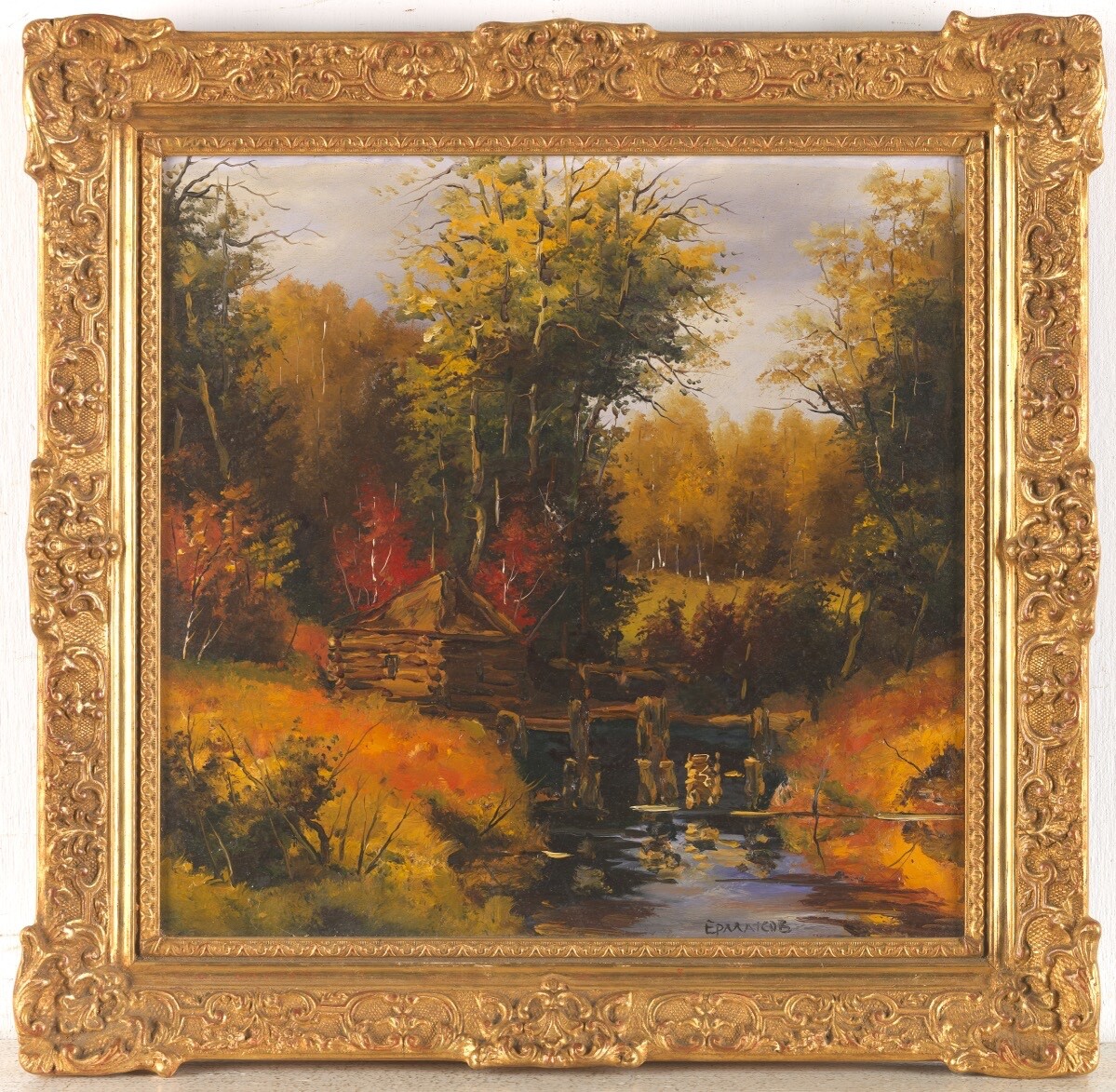 Vintage Country Landscape Original Oil on Canvas Ornate Gold Frame