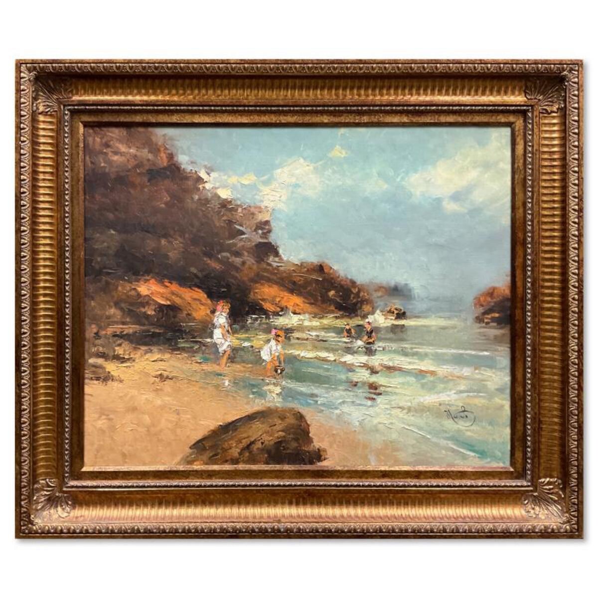 Impressionist Children Beach Original Oil Painting Listed Artist VLADIMR NASONOV