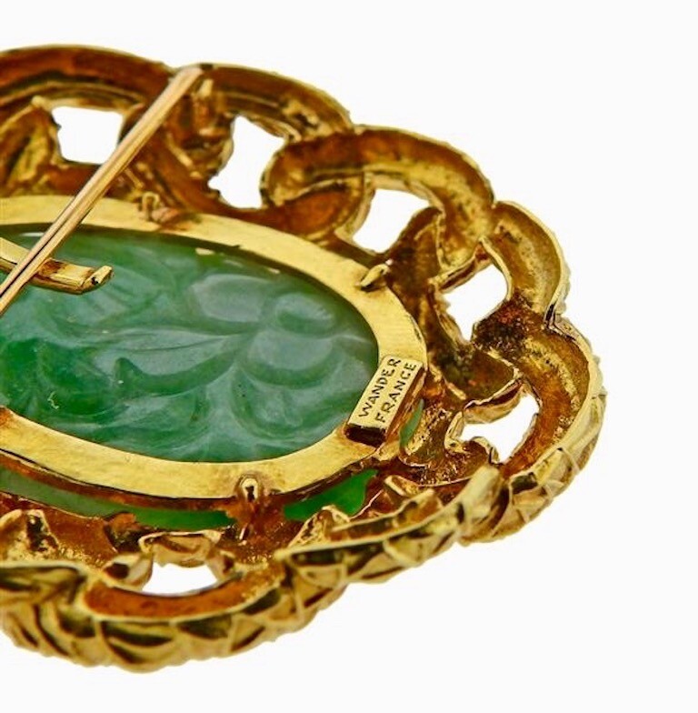 Impressive Large Vintage WANDER 18k Gold Carved Jade Pendant Brooch Estate Piece - Rare!