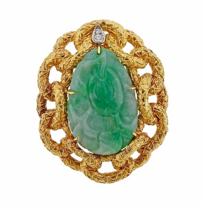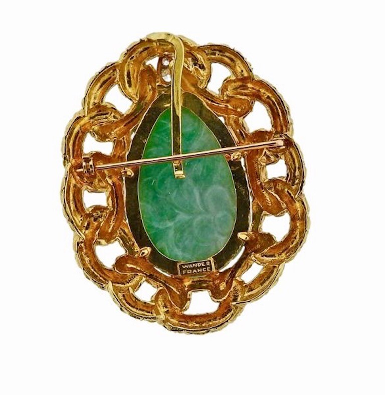 WANDER French 18k Gold VS Diamond Jade Brooch Pin Pendant