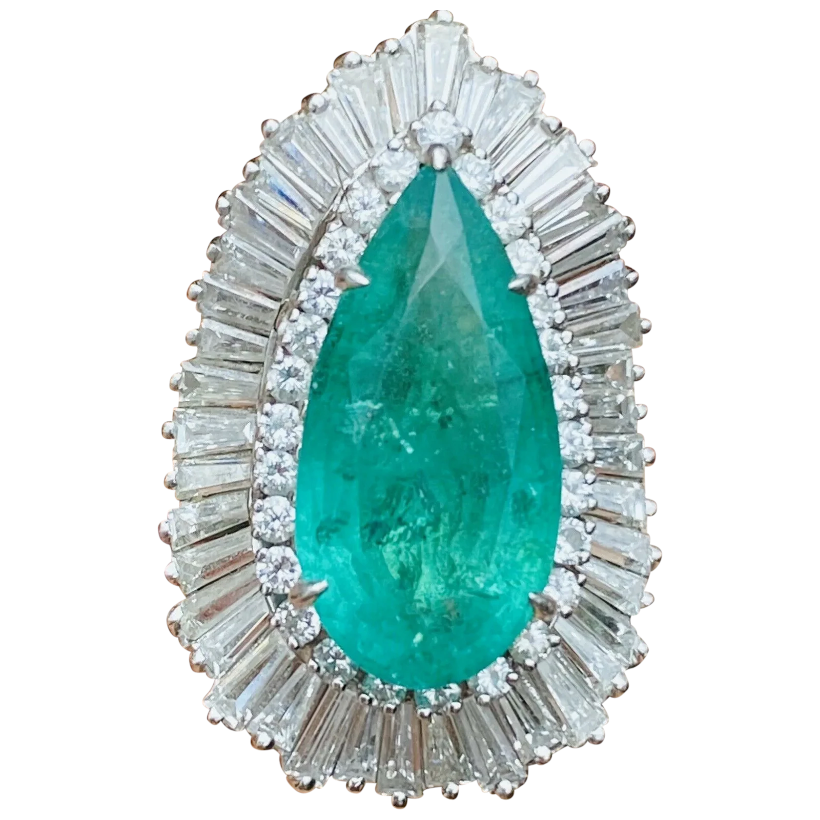 Stunning Vintage 1950s Large 14k Gold Estate 4.00ct Pear Marquise Round Diamond Custer Ring