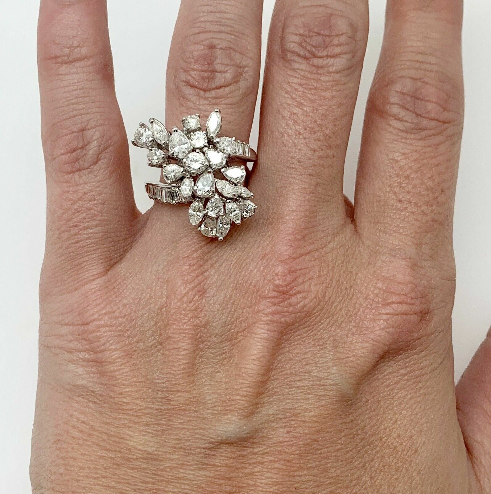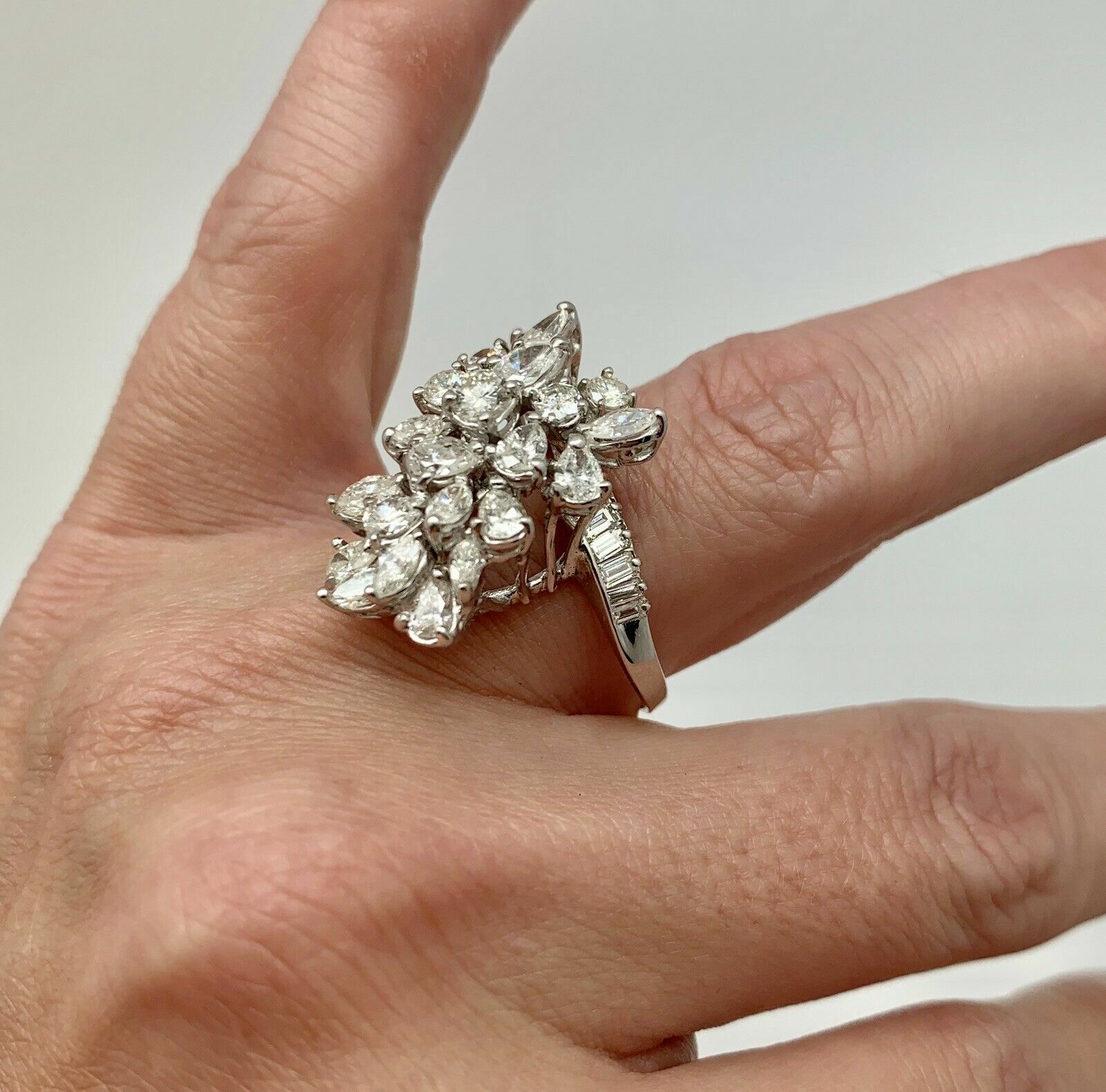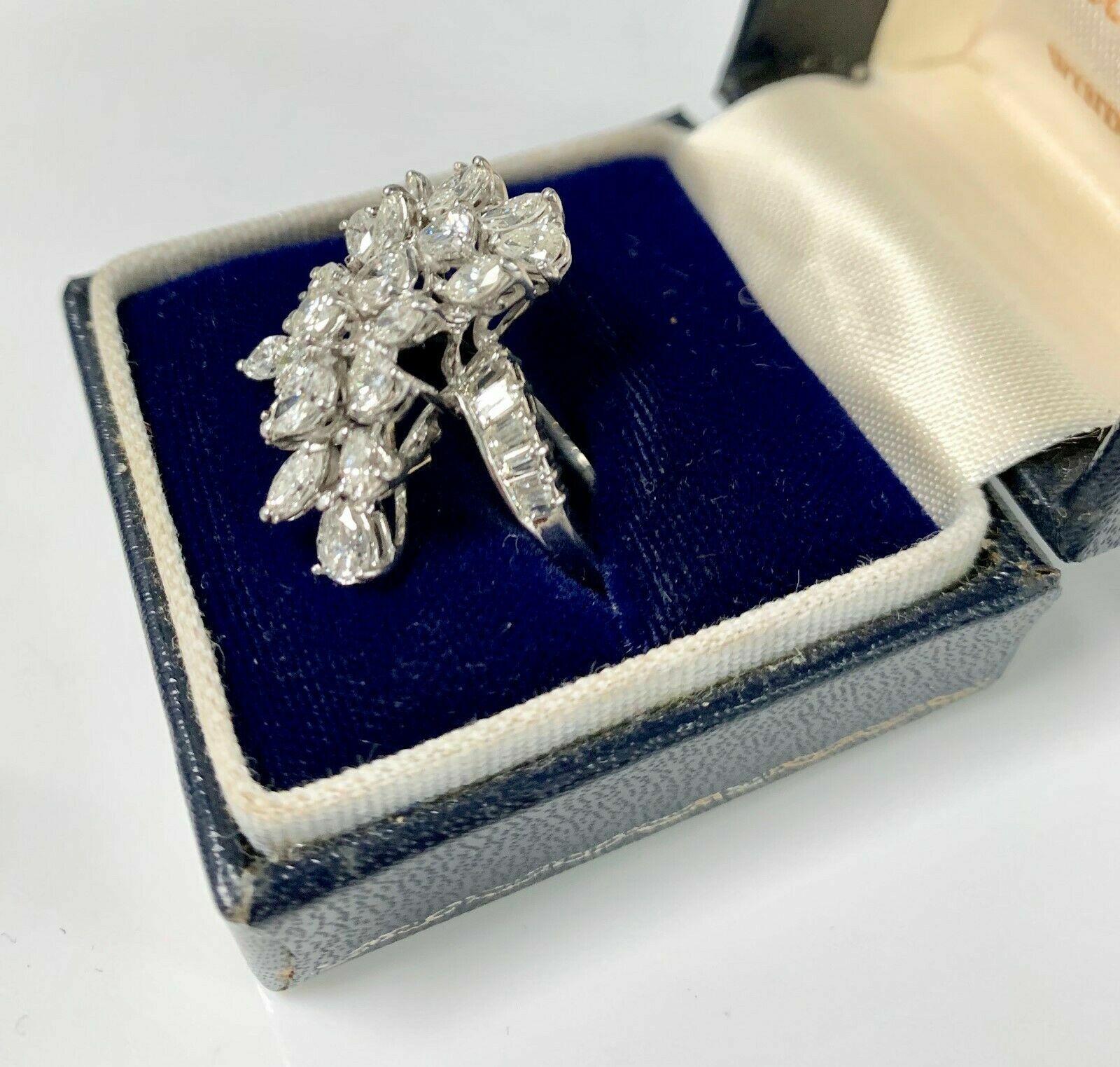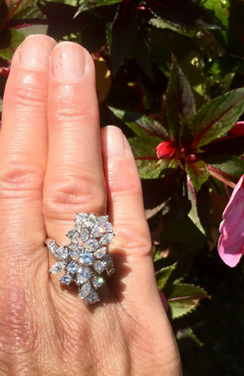 Estate Antique Platinum 3.00ct Pear Marquise Large VS Diamond Cluster Ring $12K