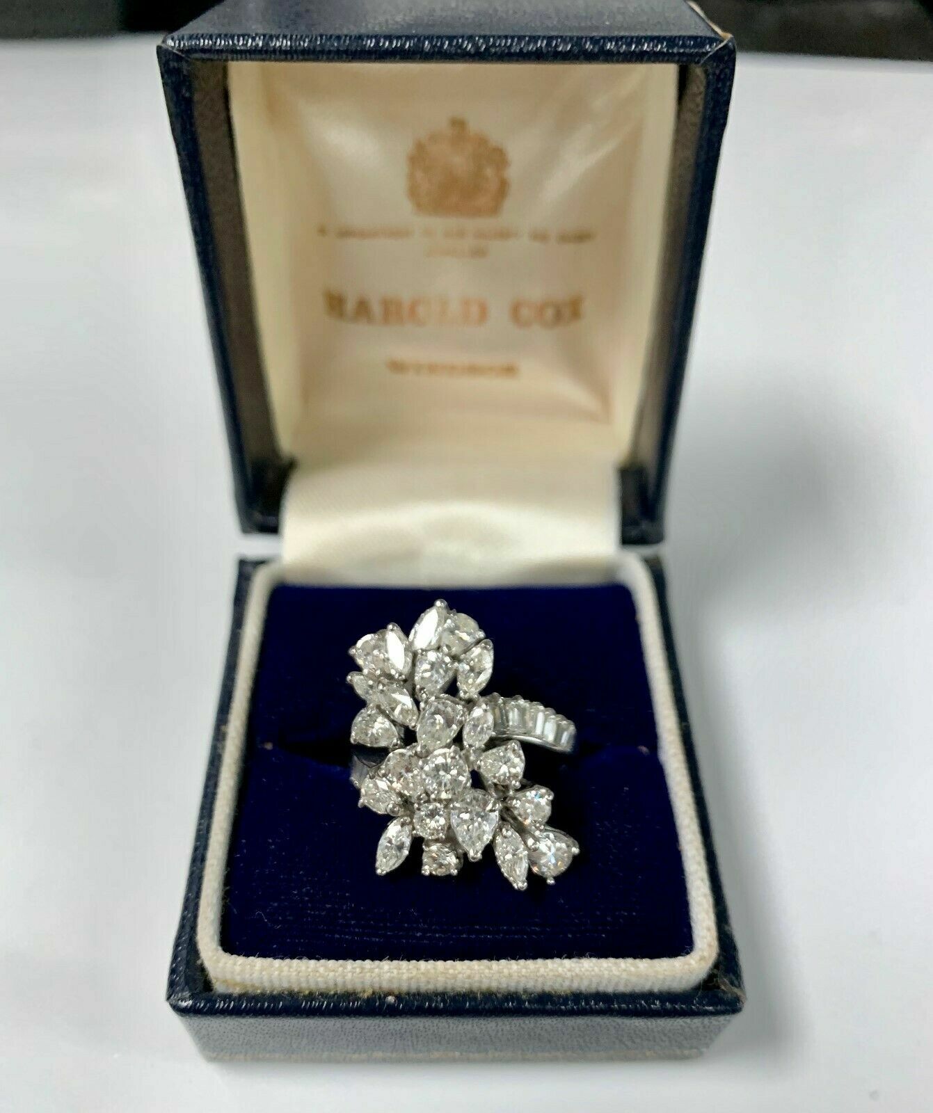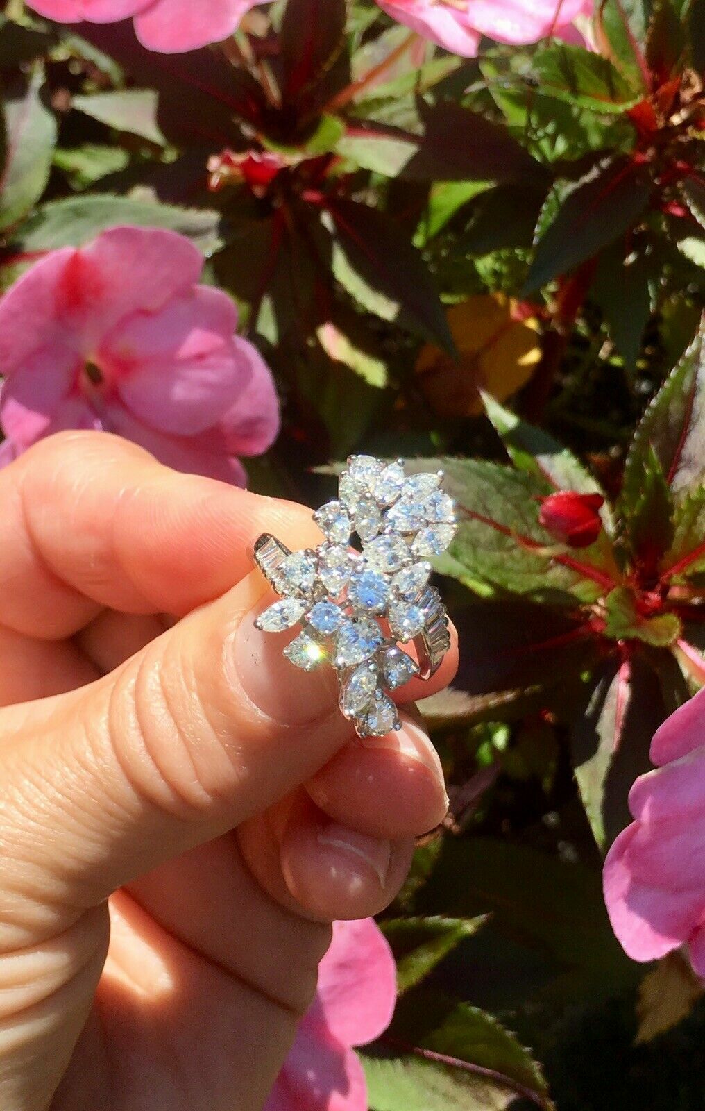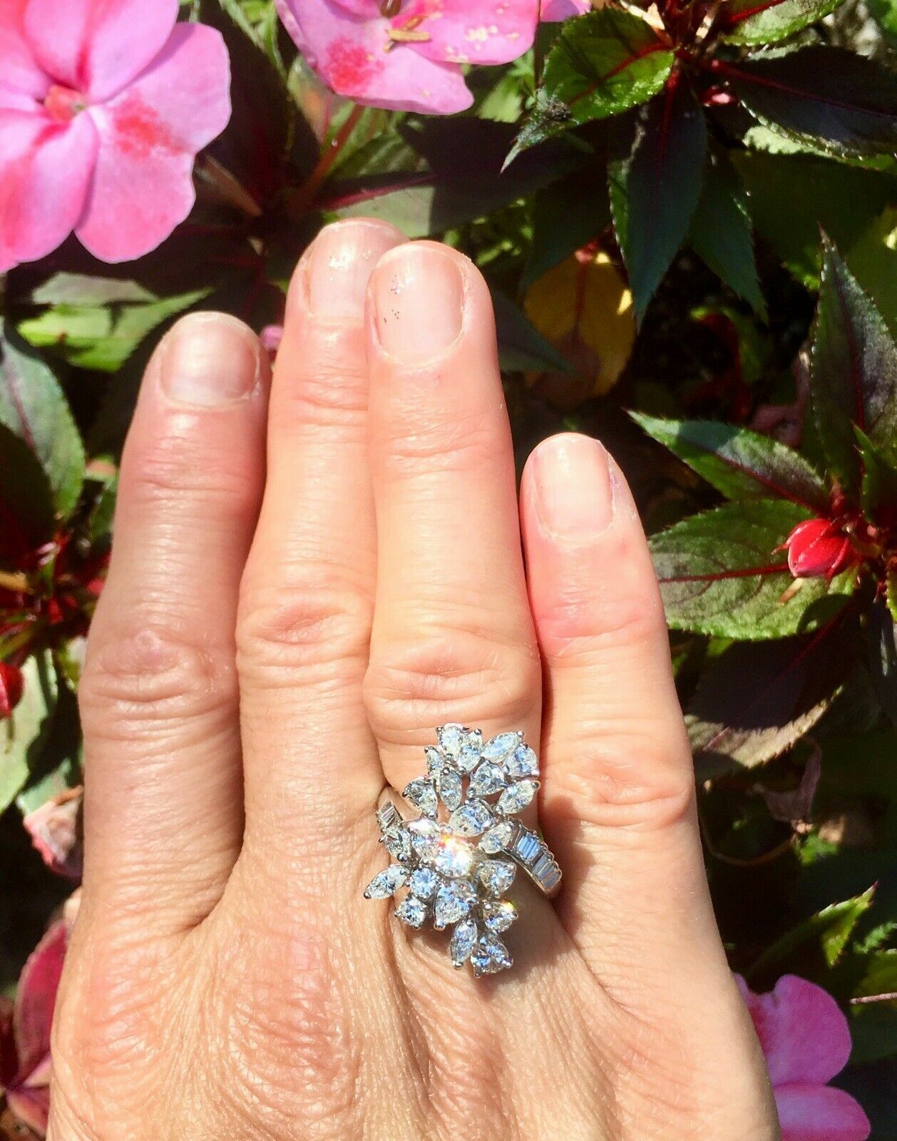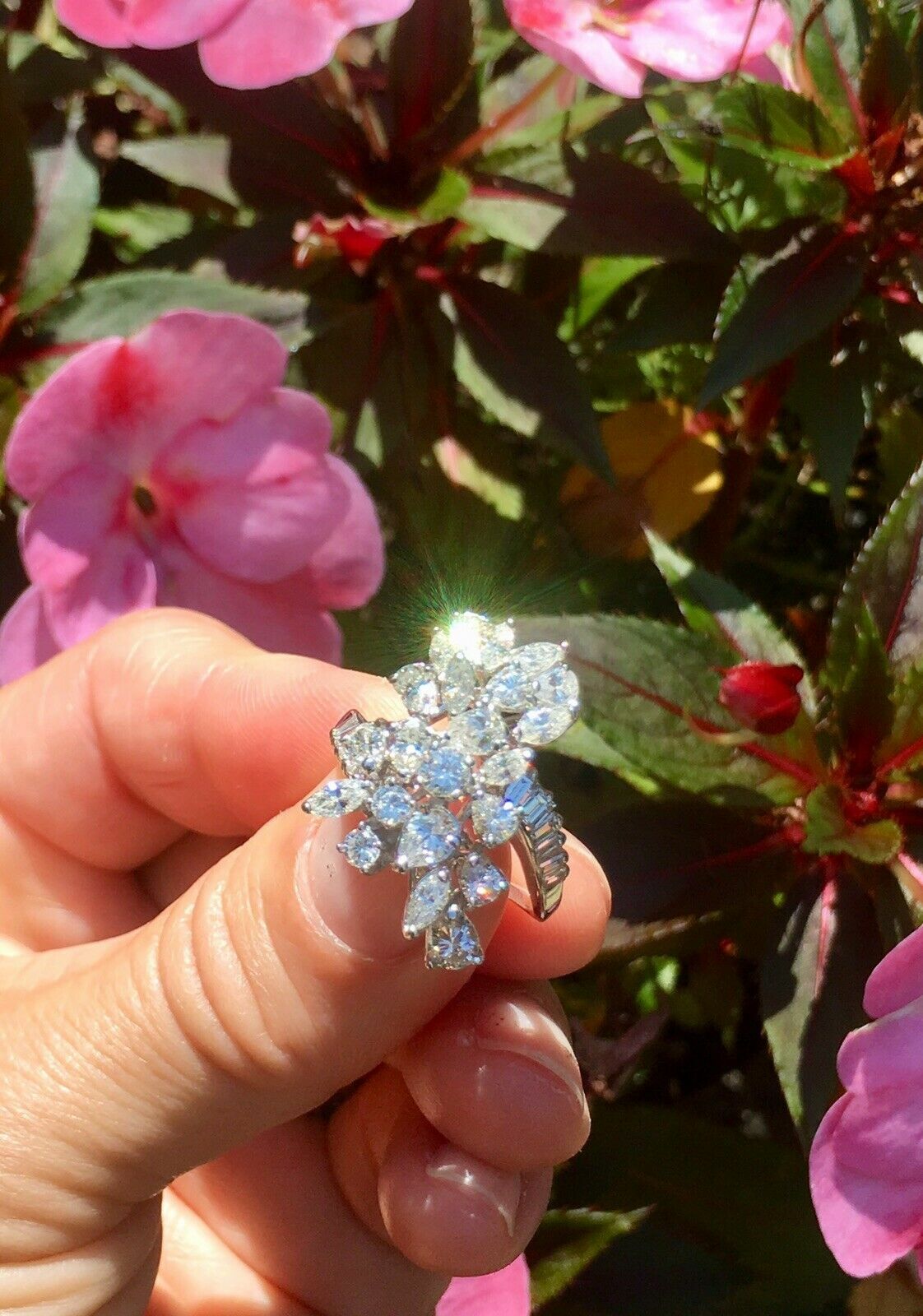 Estate Antique Platinum 3.00ct Pear Marquise Large VS Diamond Cluster Ring $12K