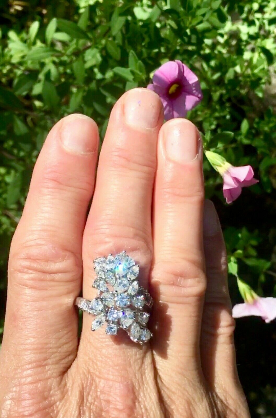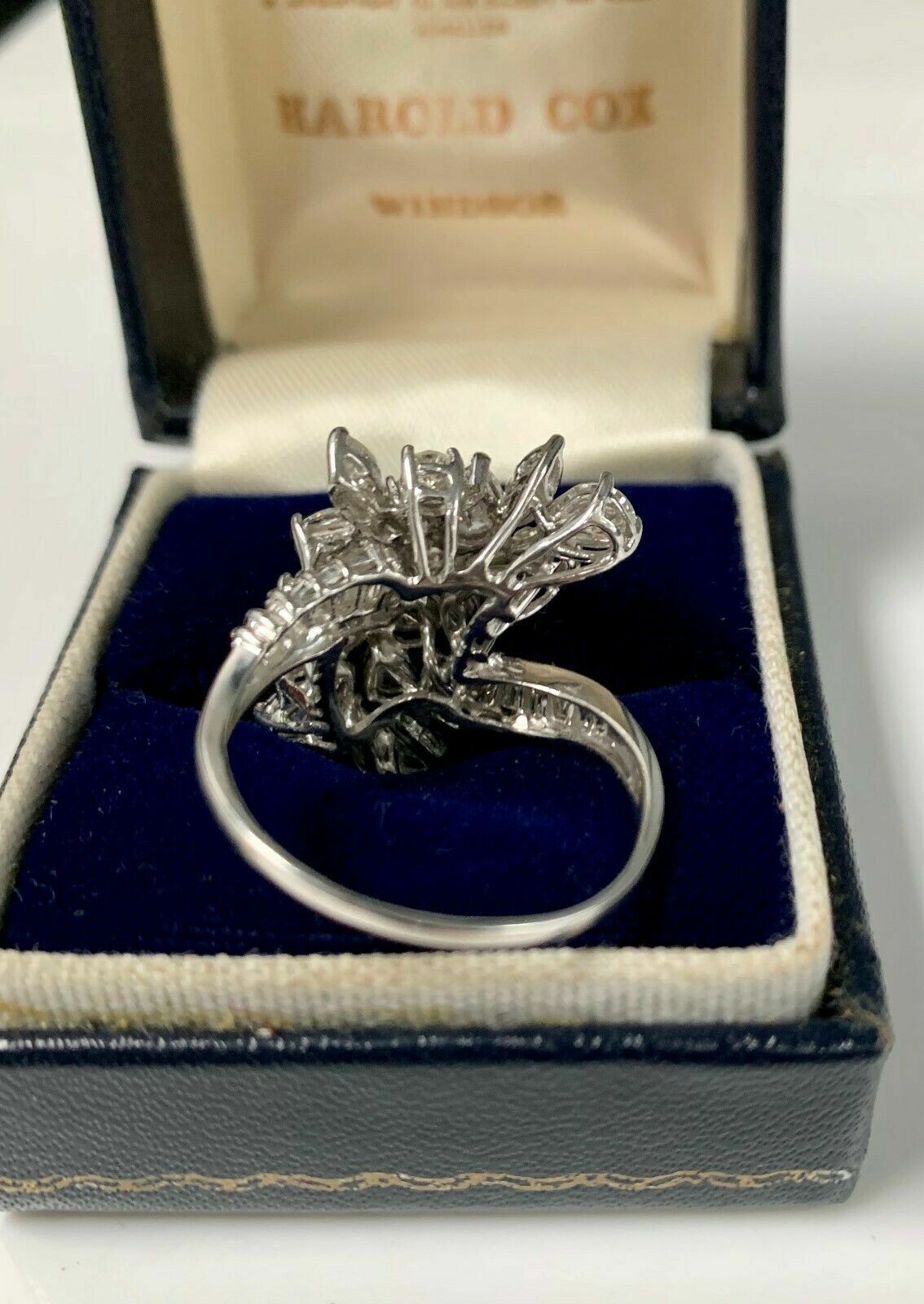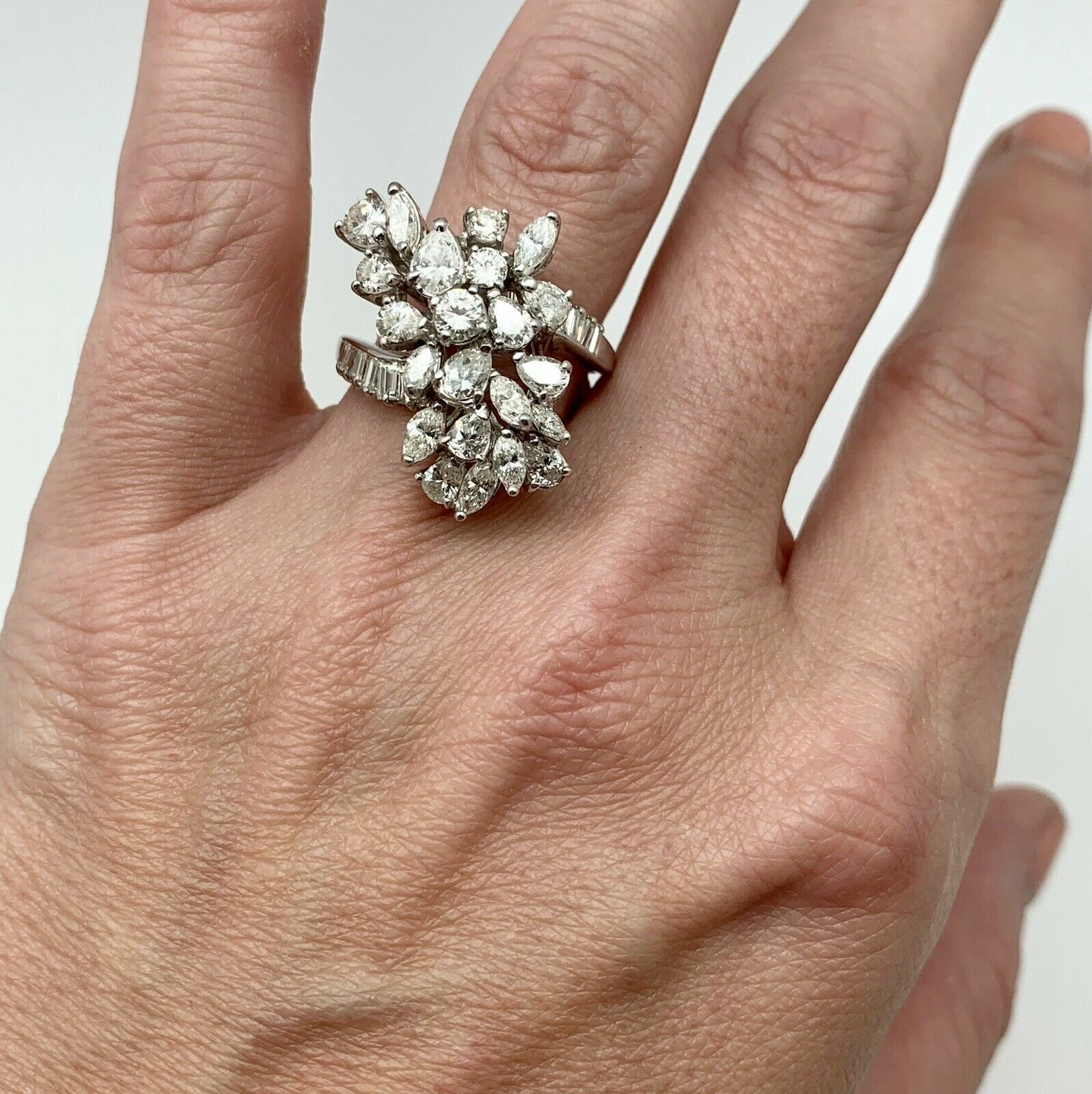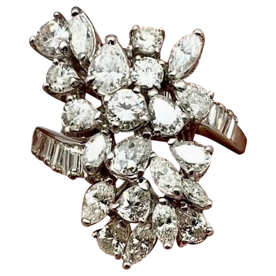 Striking Estate Vintage 1950s Retro Platinum 3.00 ctw VS Diamond Cluster Cocktail Ring