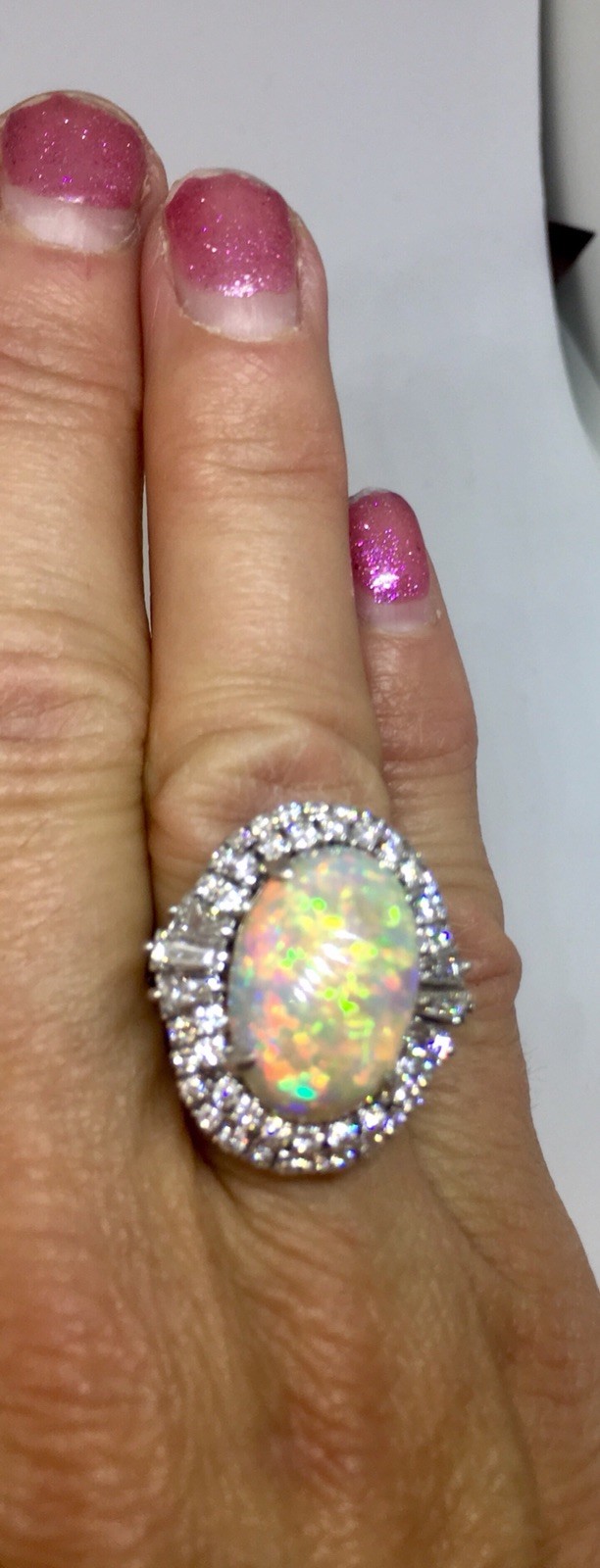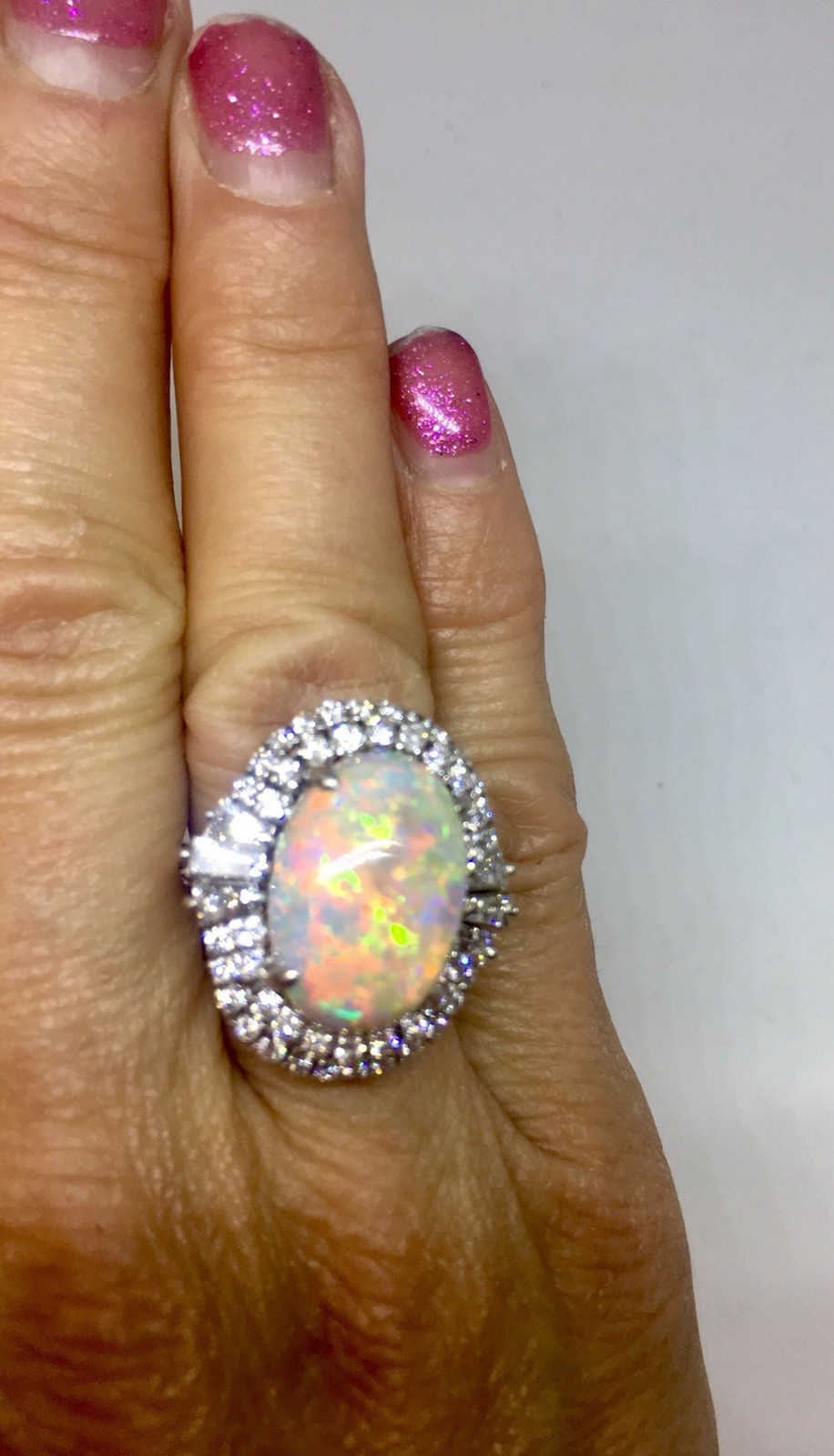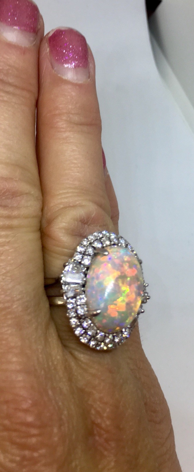 Impressive Estate Art Deco Platinum, 7ct Opal VS Diamond Ring