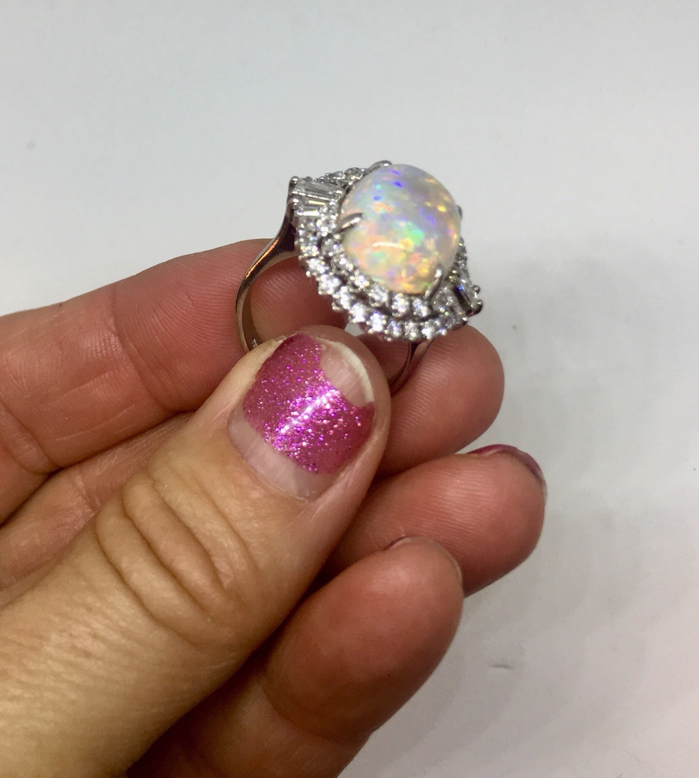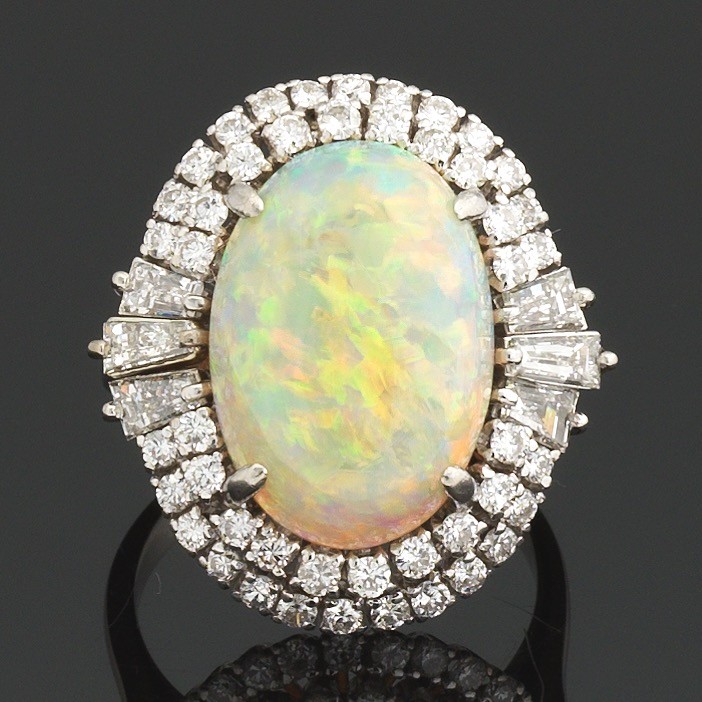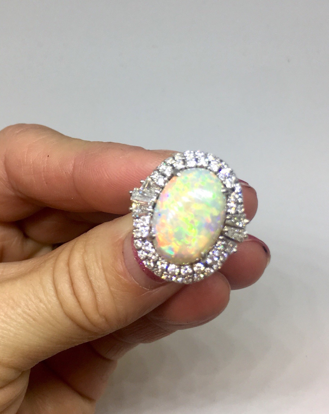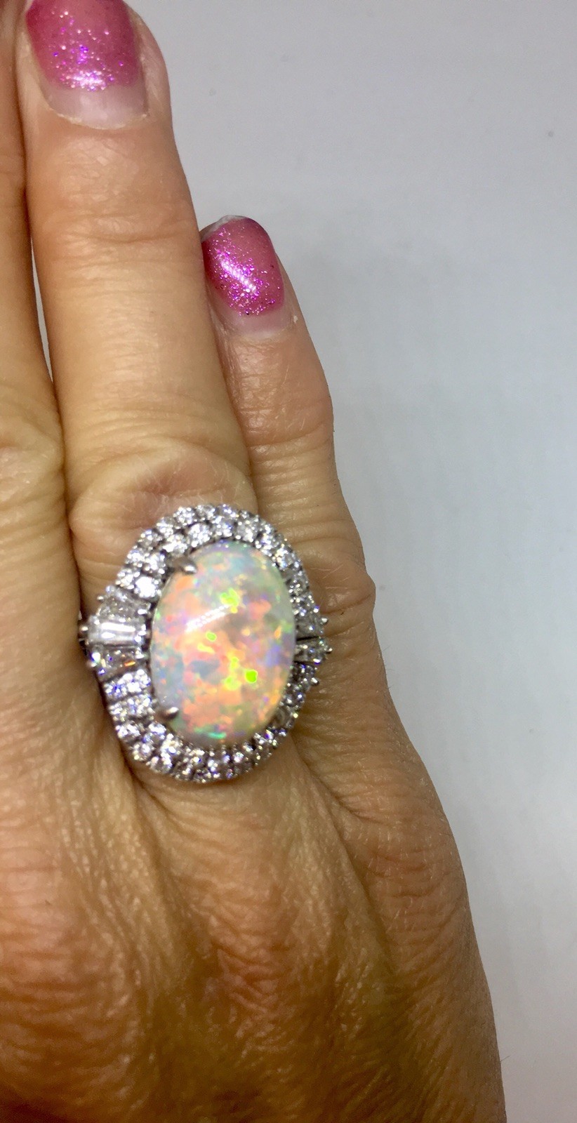 Impressive Estate Art Deco Platinum, 7ct Opal VS Diamond Ring