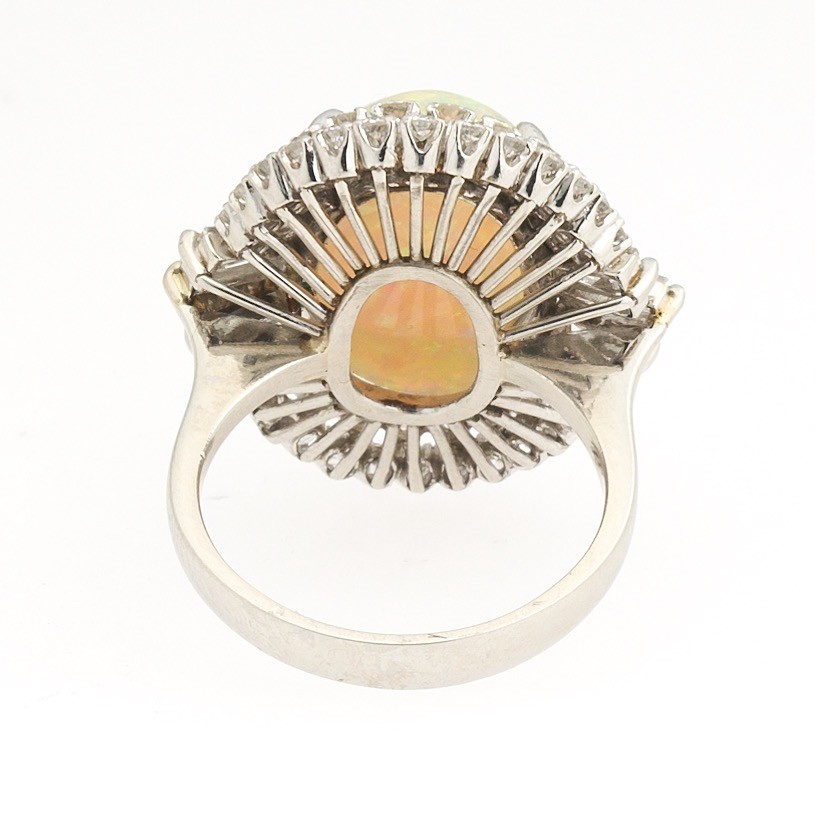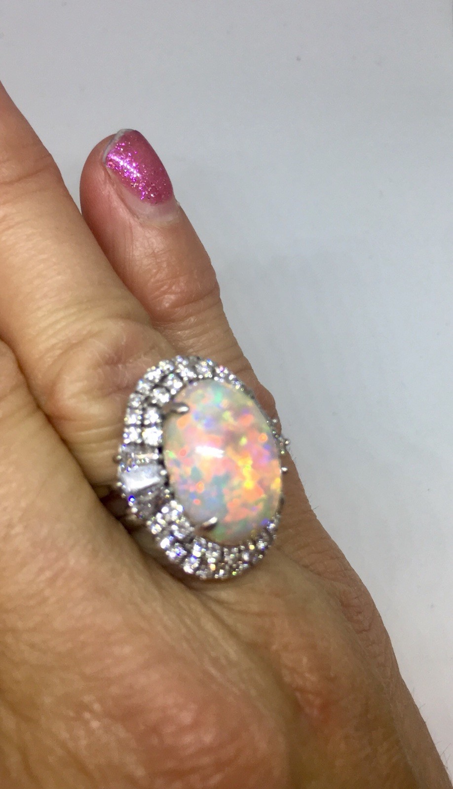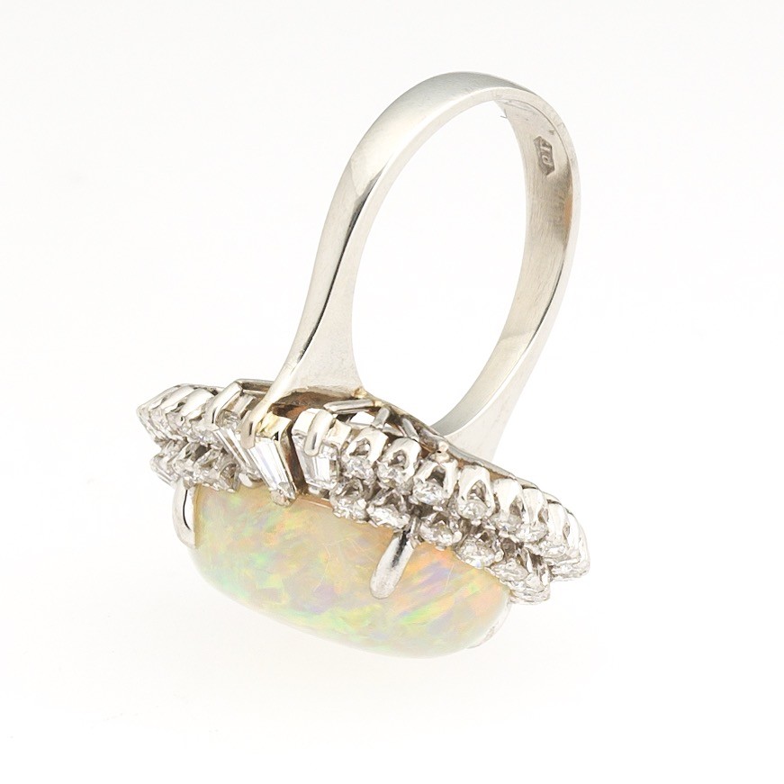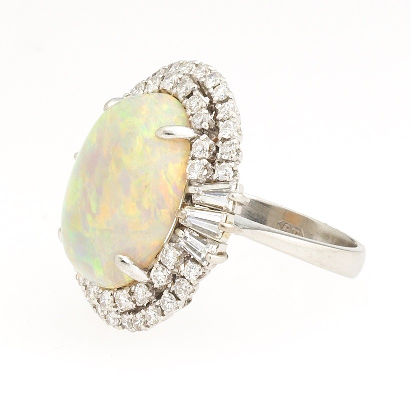 Impressive Estate Art Deco 1940-50s Platinum, 7ct Opal VS Diamond Cocktail Ring
