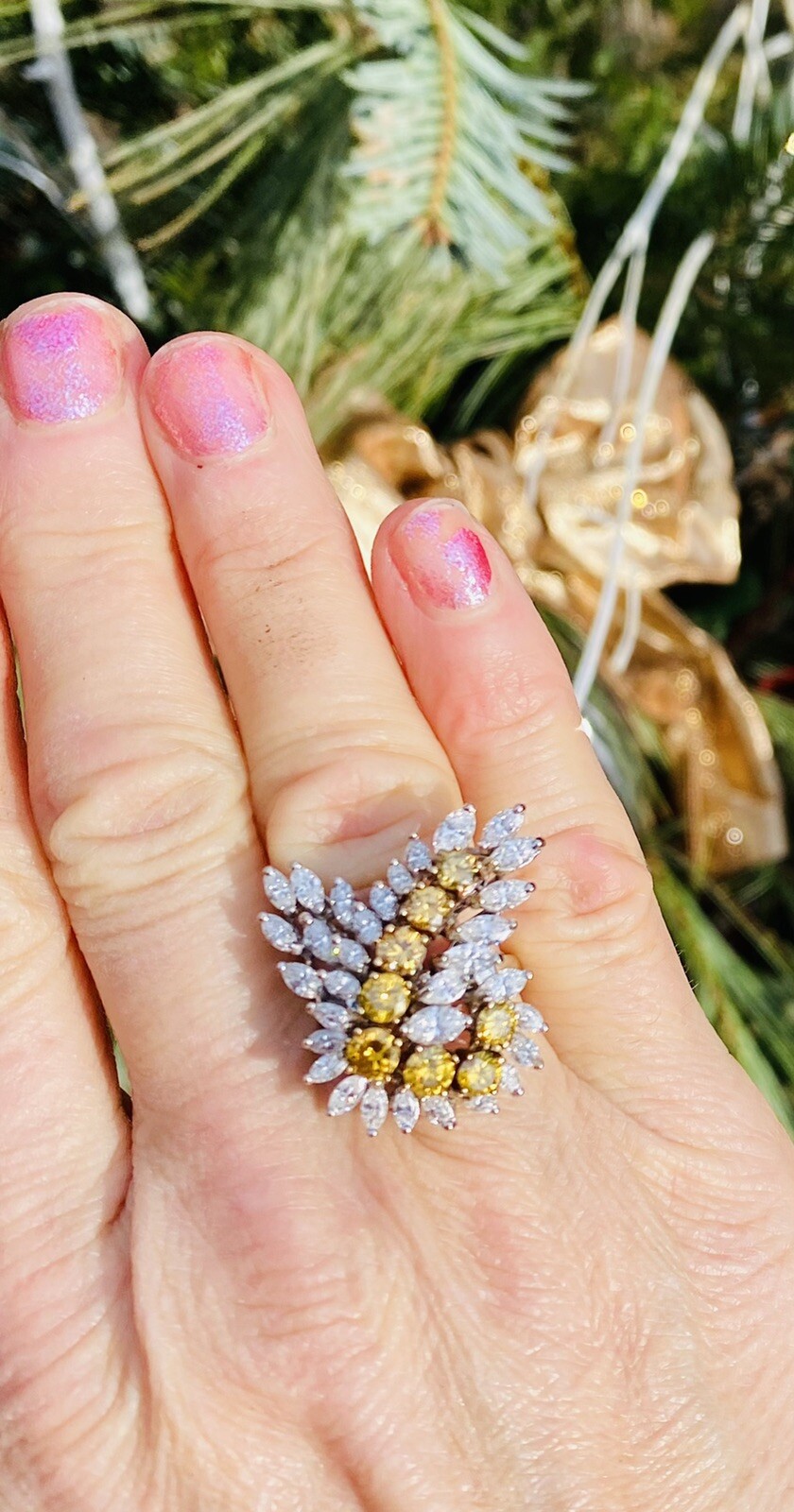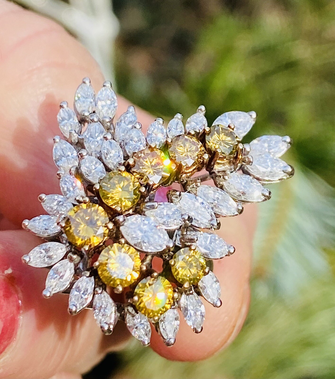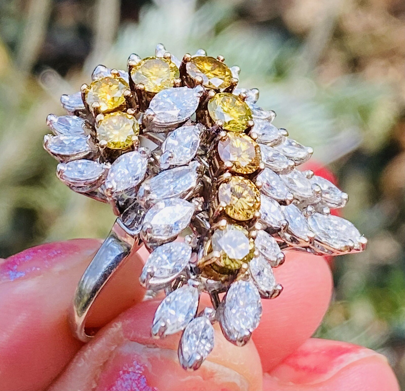 Vintage Estate 18k Gold 4.00ct Brilliant Diamond Cluster Cocktail Statement Ring