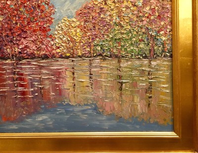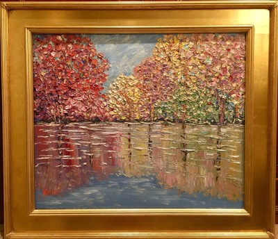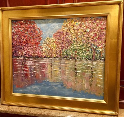 KADLIC Abstract Autumn Trees Landscape Art Original Oil Painting Gold Frame 24”