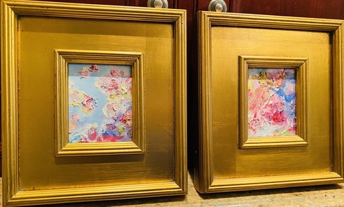 KADLIC Abstract Impasto Original Oil Painting Gold Gilt Frame Fine Art 14”