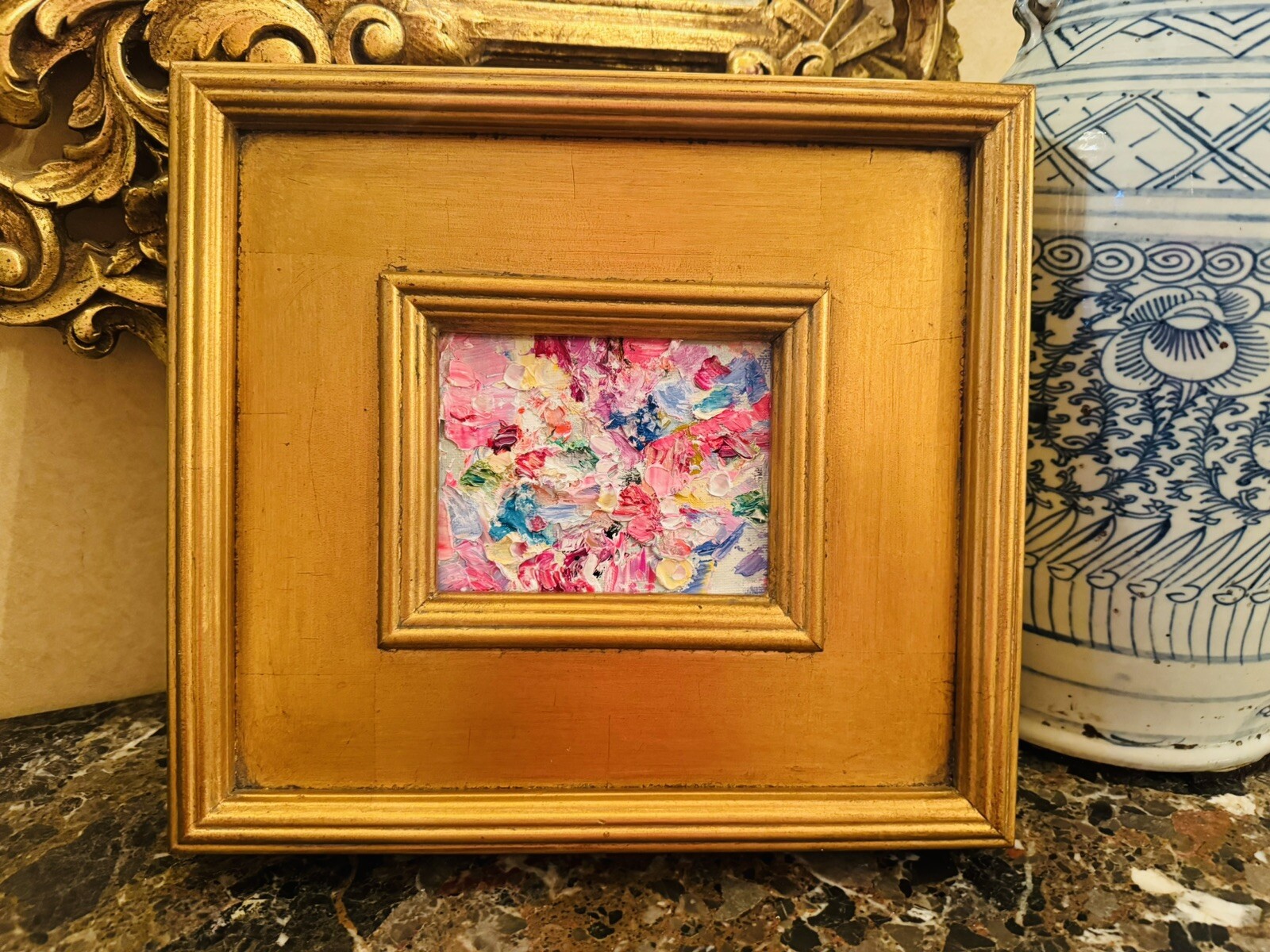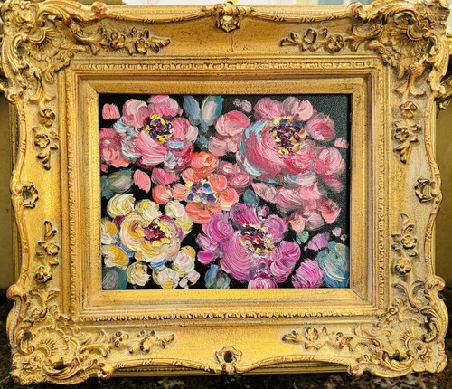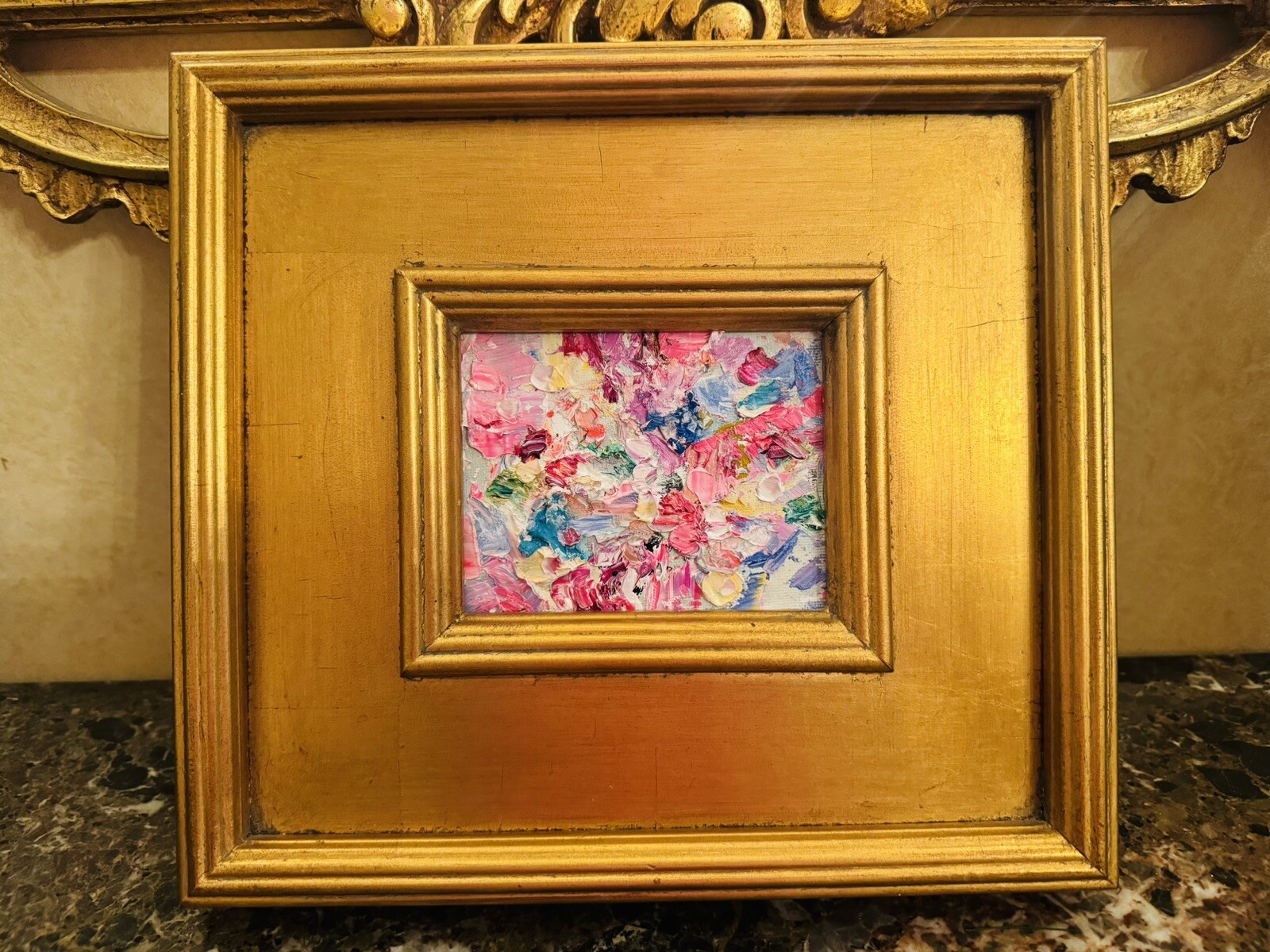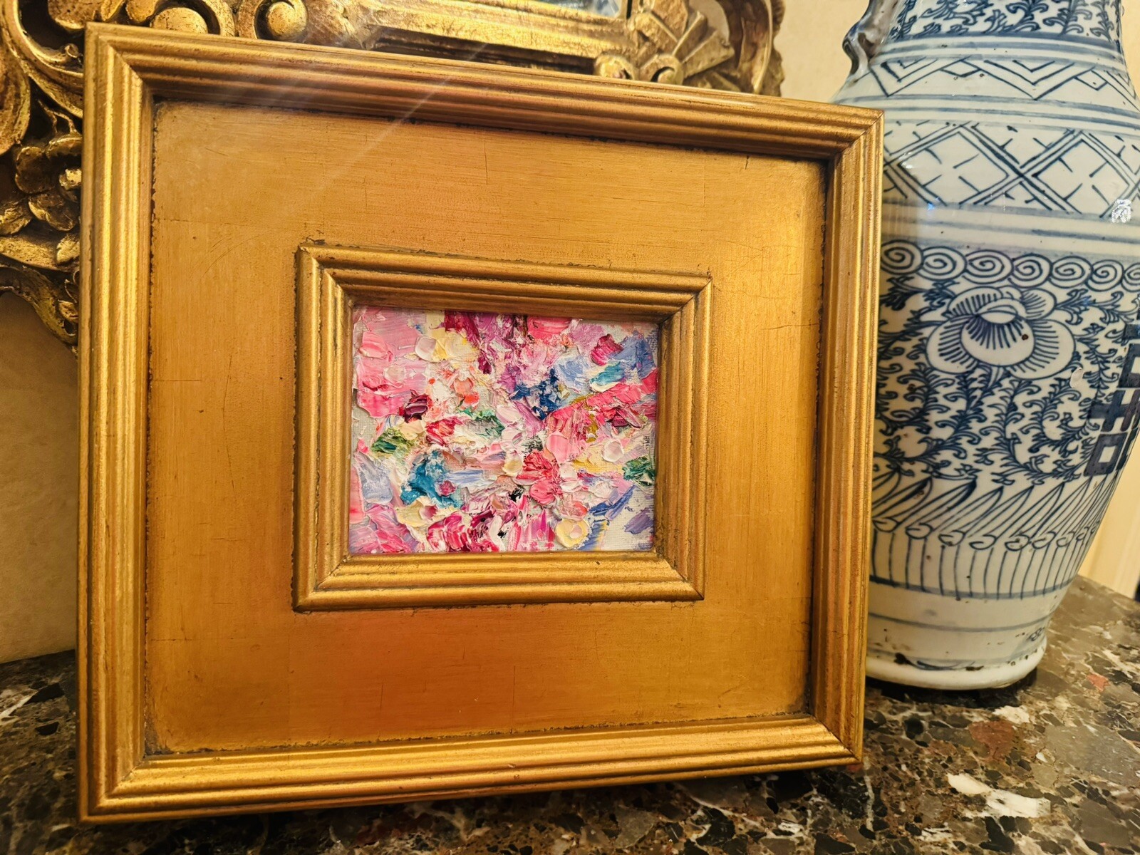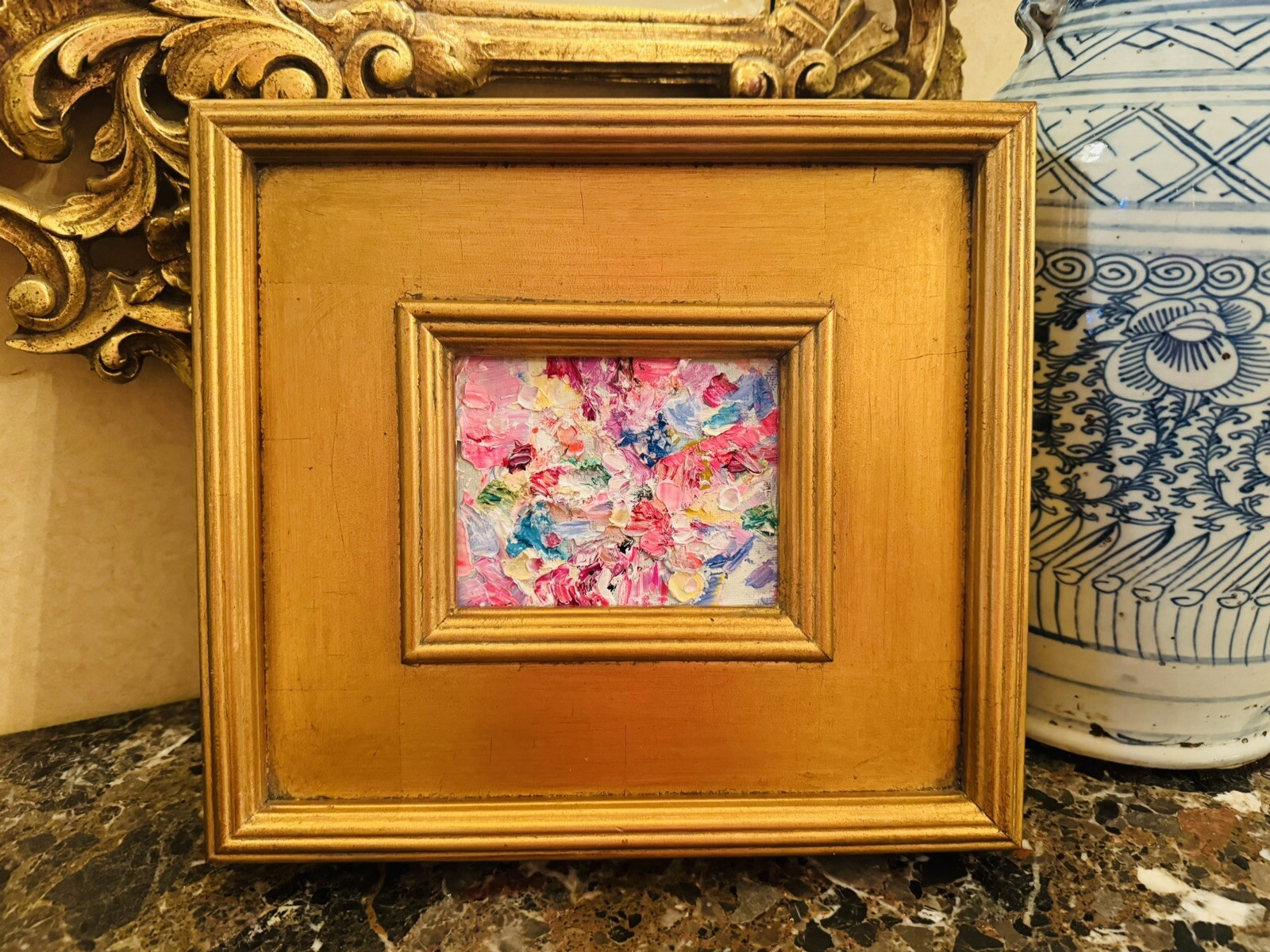 KADLIC Abstract Impasto Original Oil Table Painting Gold Gilt Frame 10" Fine Art
