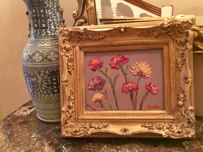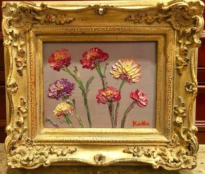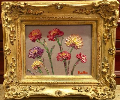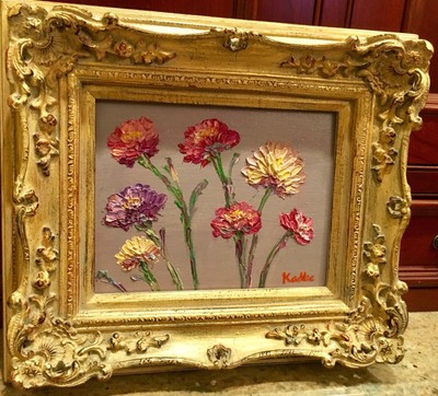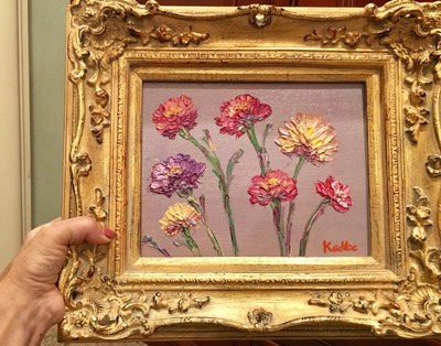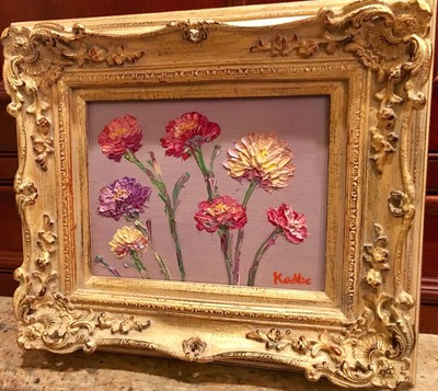 KADLIC Floral Poppies Flowers Original Oil Painting 8x10 Gold Gilt Leaf Frame