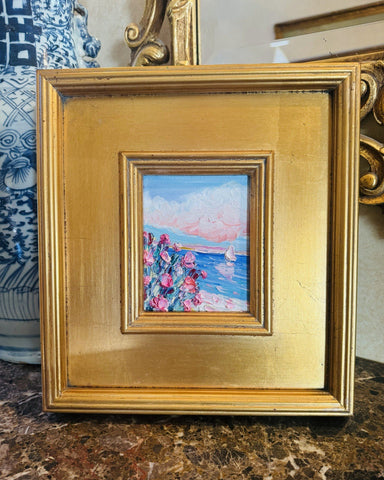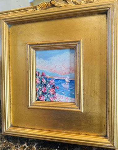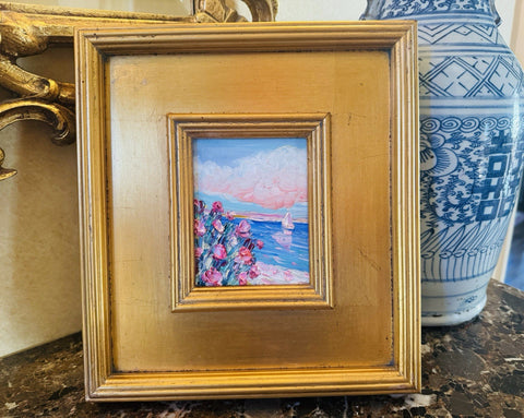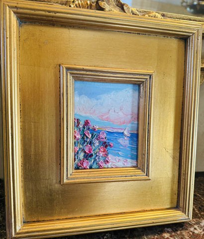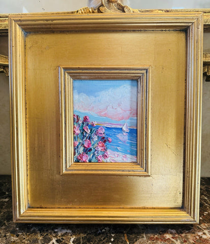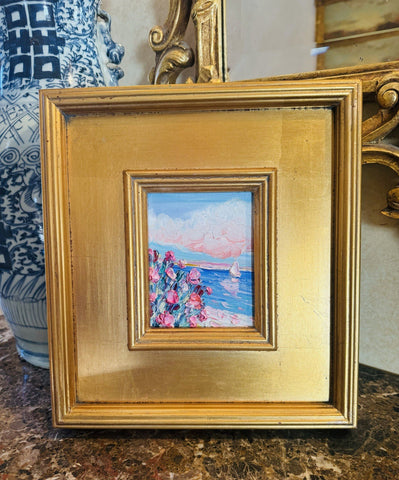 KADLIC Original Oil Painting Seascape Wildflowers Impasto Gold Gilt 12” Frame