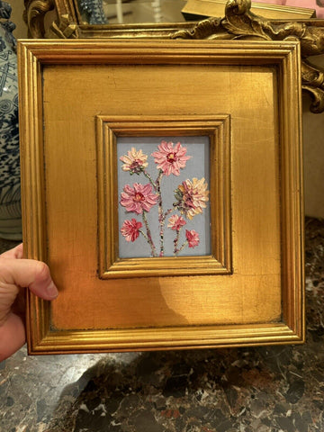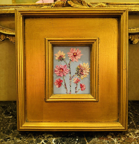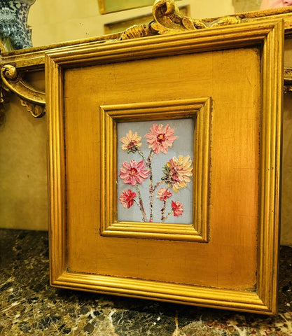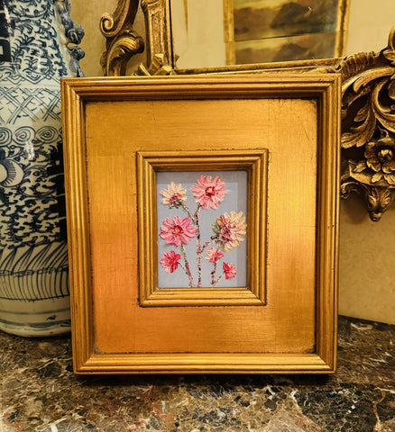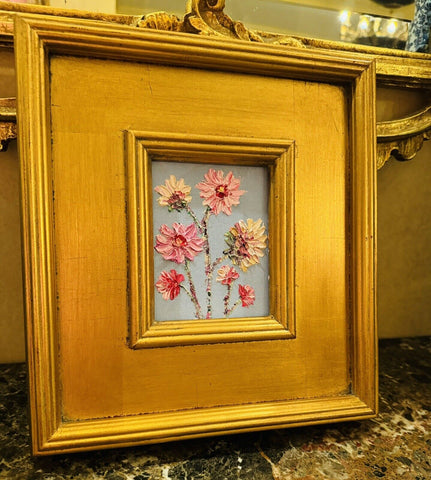 KADLIC Original Oil Painting Wildflowers Impasto Gold Gilt 12” Frame