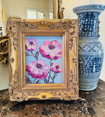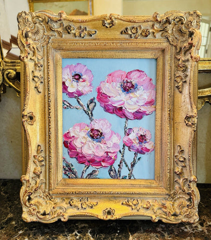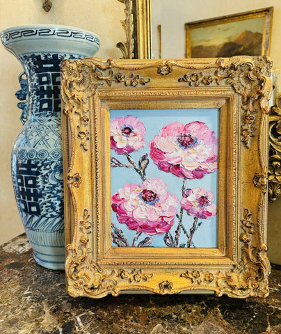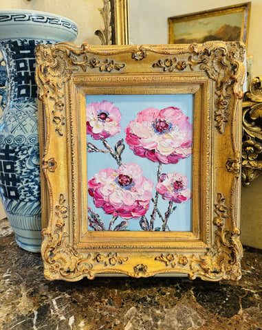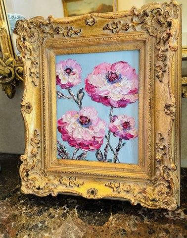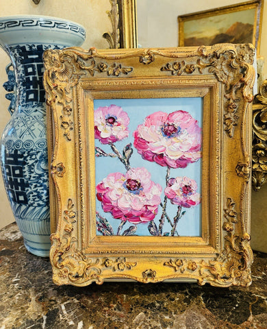 KADLIC Original Oil Painting Wildflowers Impasto Gold Gilt 15" Frame
