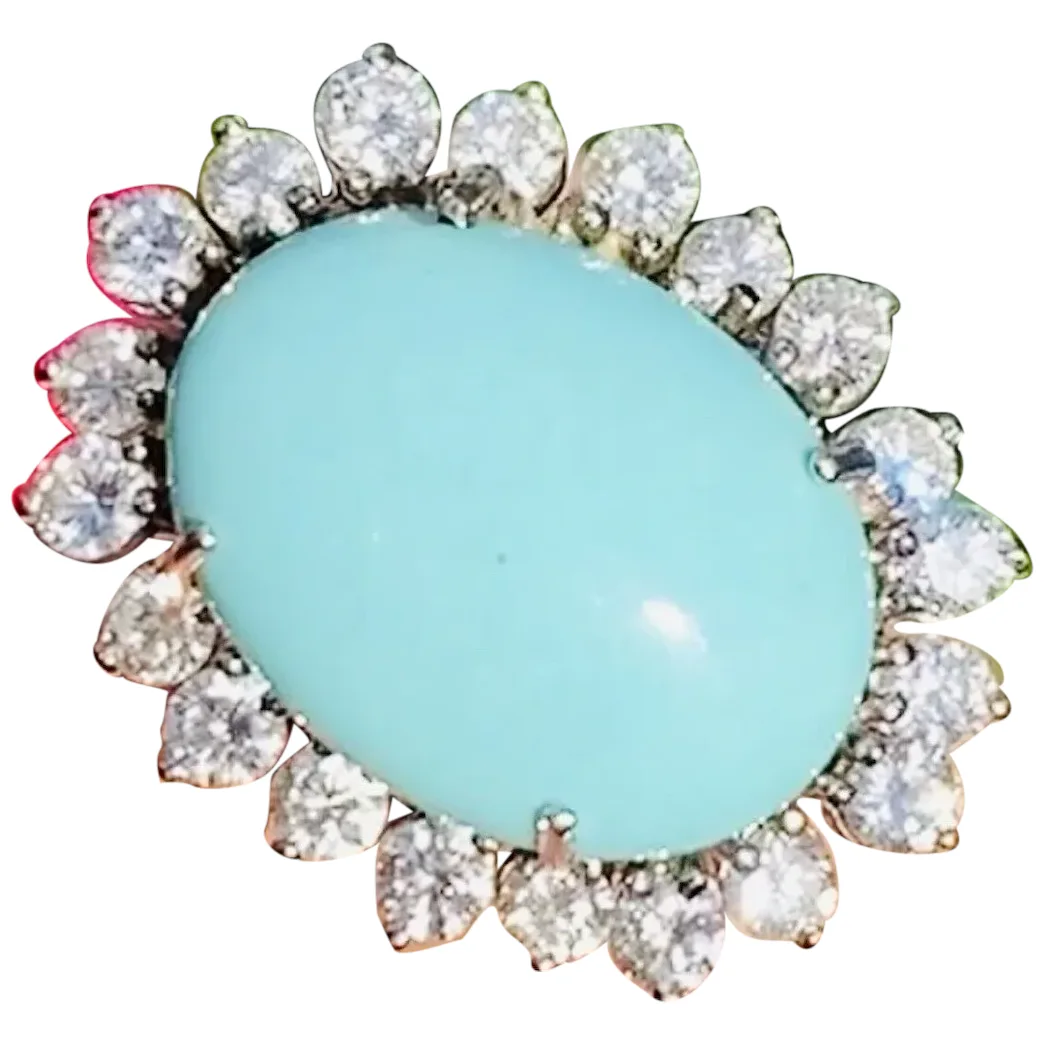 Vintage 14k Gold Estate 1.18ct VS Diamond Turquoise Cabochon Cocktail Statement