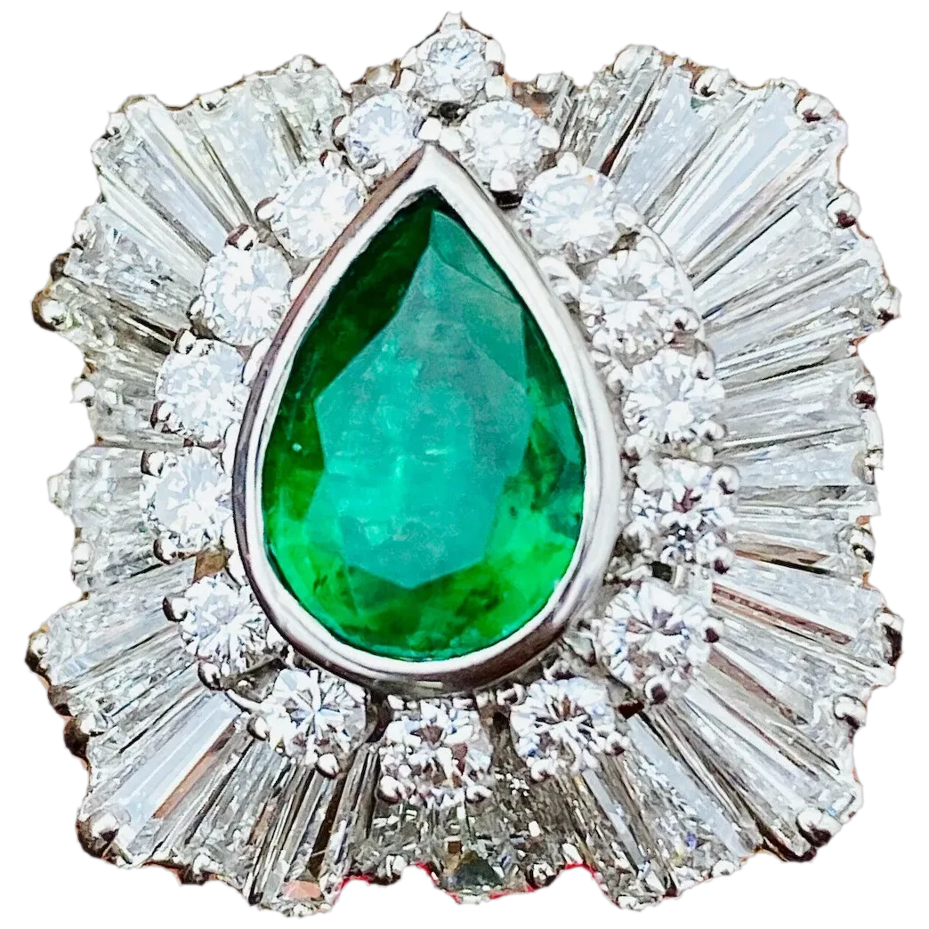 Vintage Ring-dant Platinum 4ct Emerald Diamond Halo Baguette Ballerina Ring