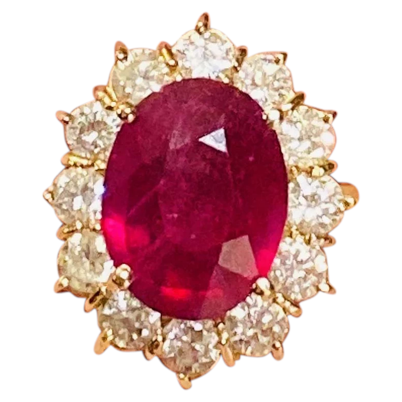 Vintage 14k Gold Estate 7.00ct Red Ruby VS Diamond Cocktail Ring