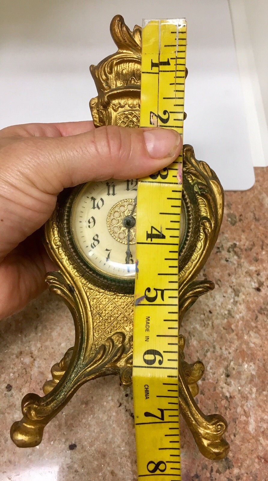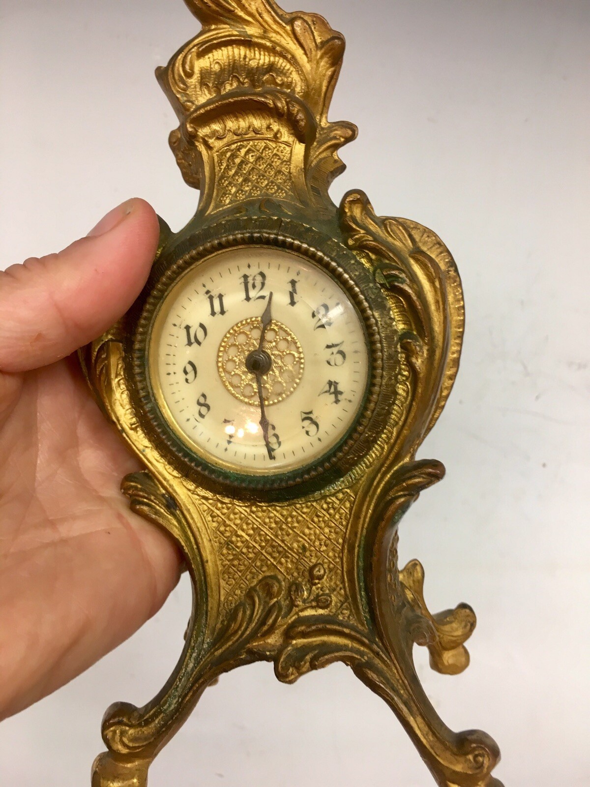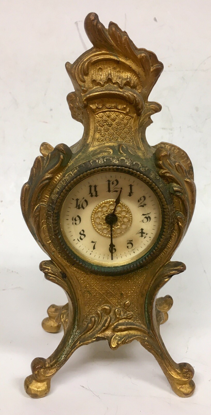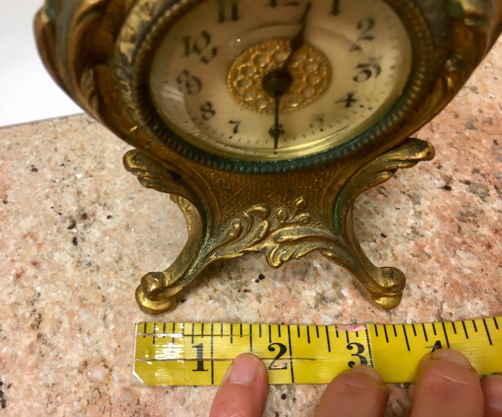 Pretty Antique French Empire Baroque Style Gilt Bronze Small Desk Clock 7.5"