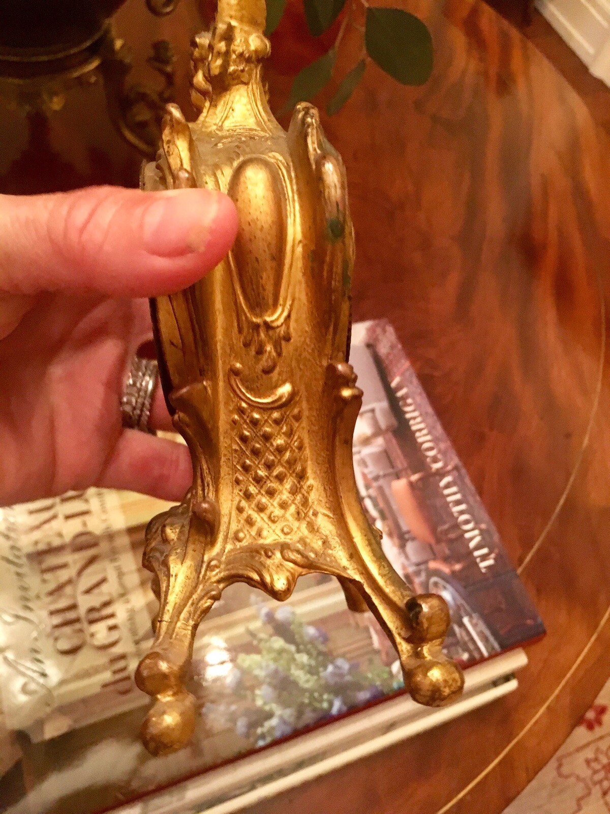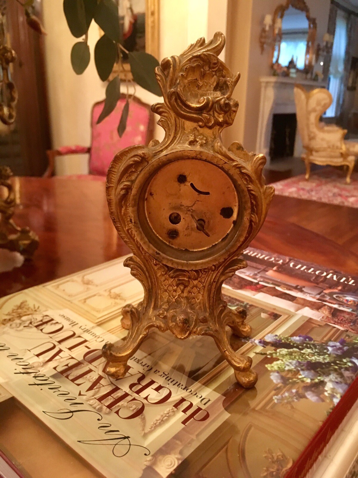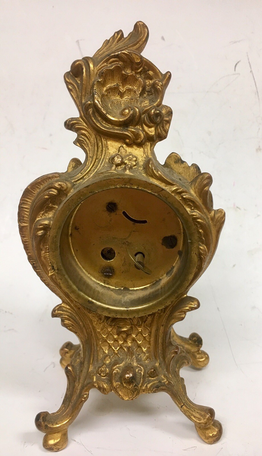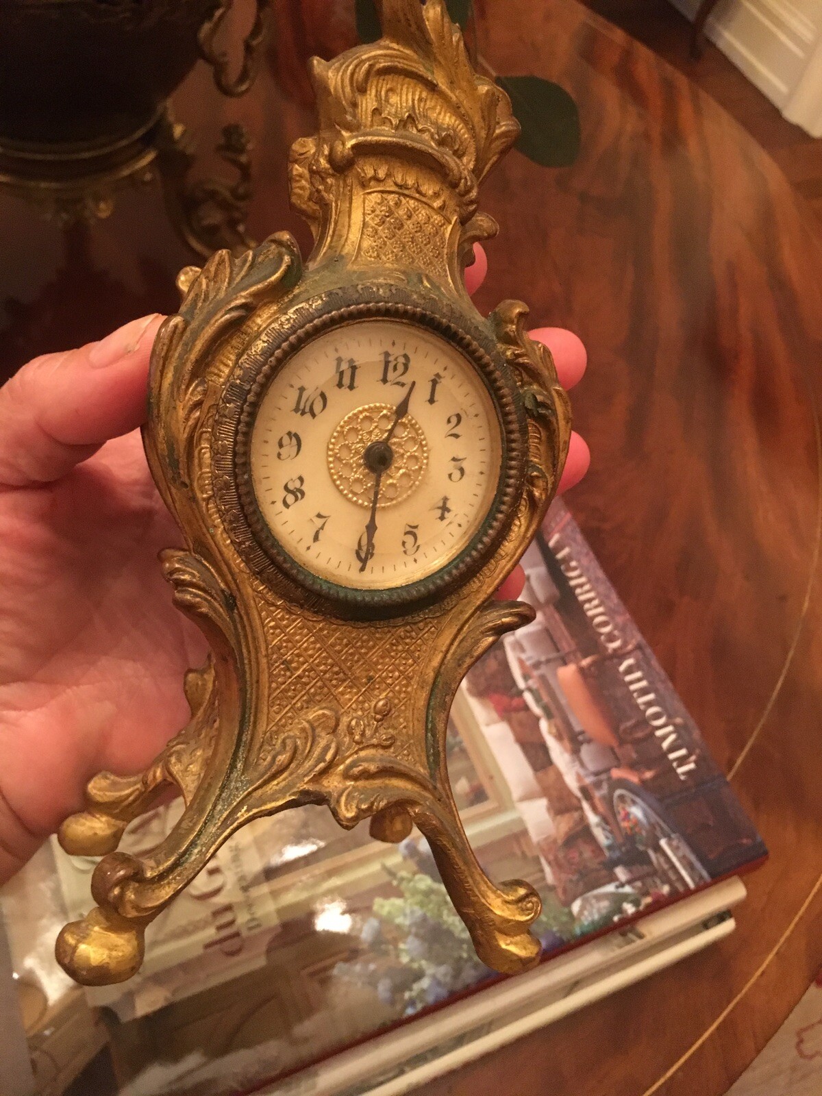Pretty Antique French Empire Baroque Style Gilt Bronze Small Desk Clock 7.5"
