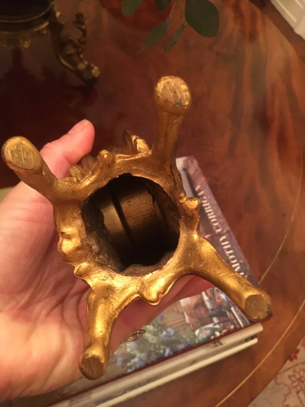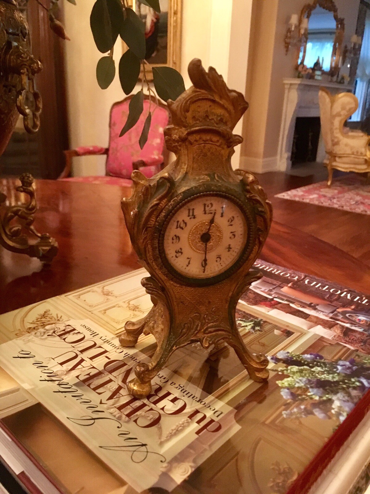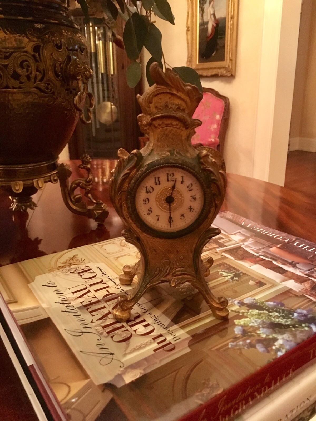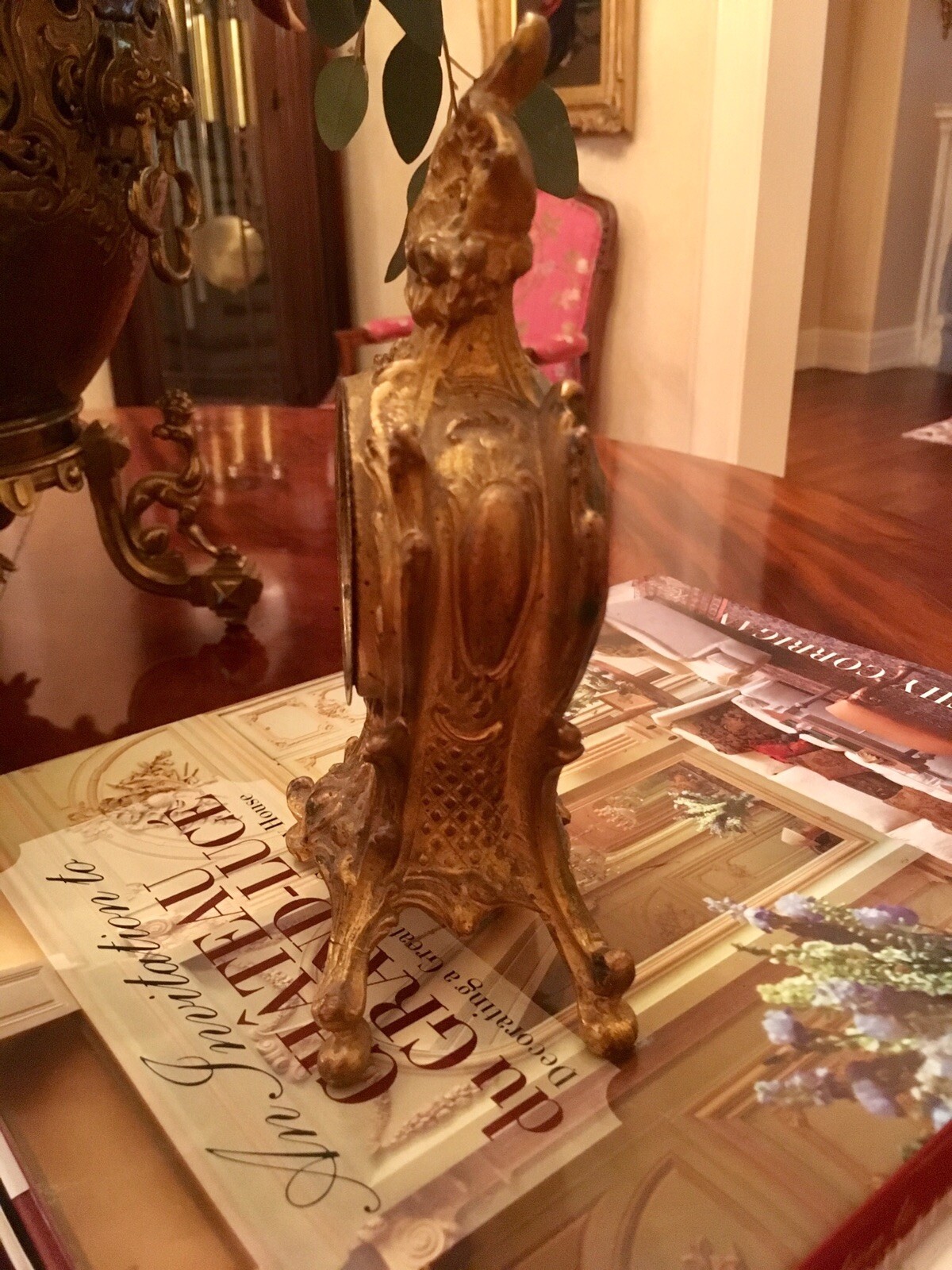 Pretty Antique French Empire Baroque Style Gilt Bronze Small Desk Clock 7.5"