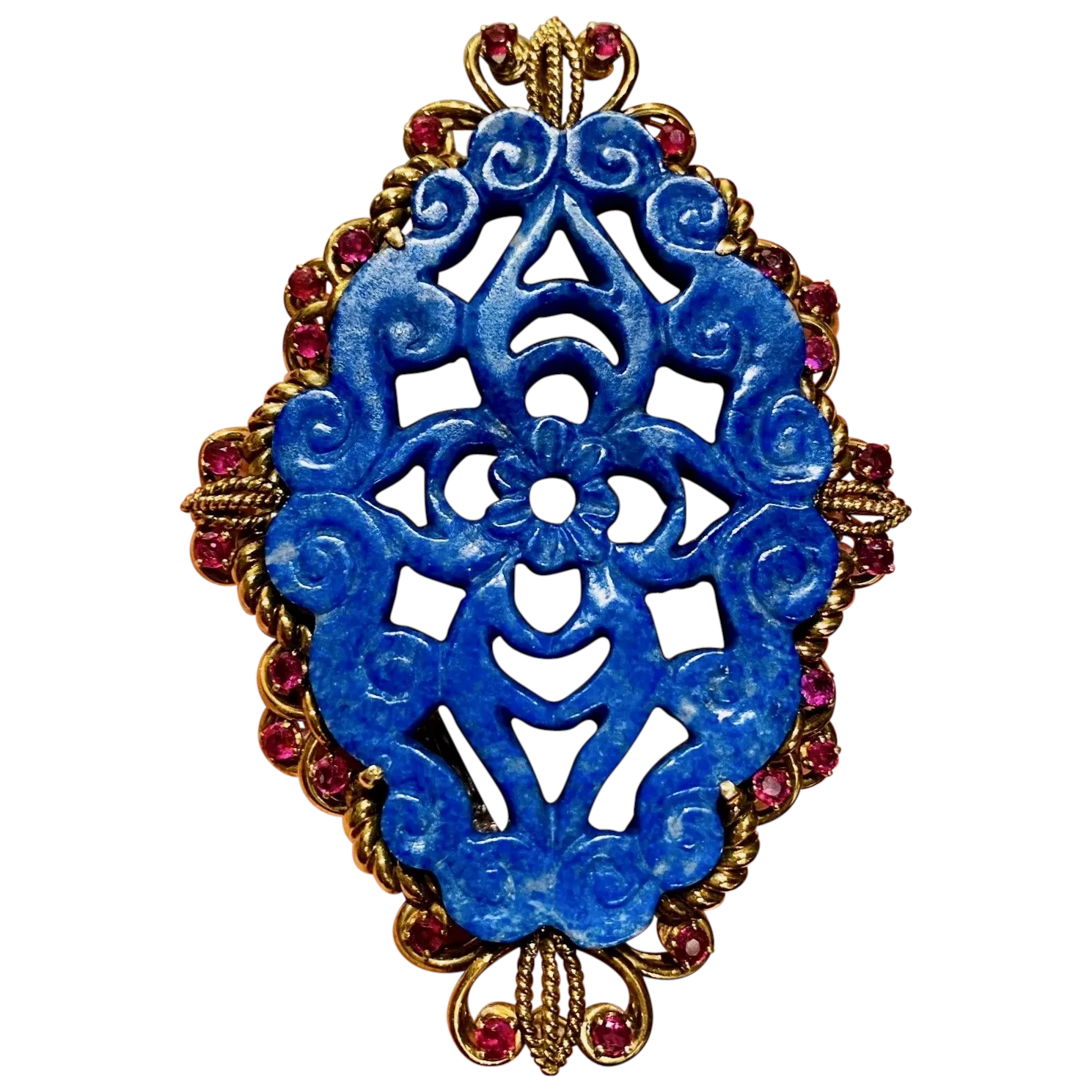 Retro 1950s Vintage Estate 18k Gold 5ct VS Diamond Emerald Necklace Pendant