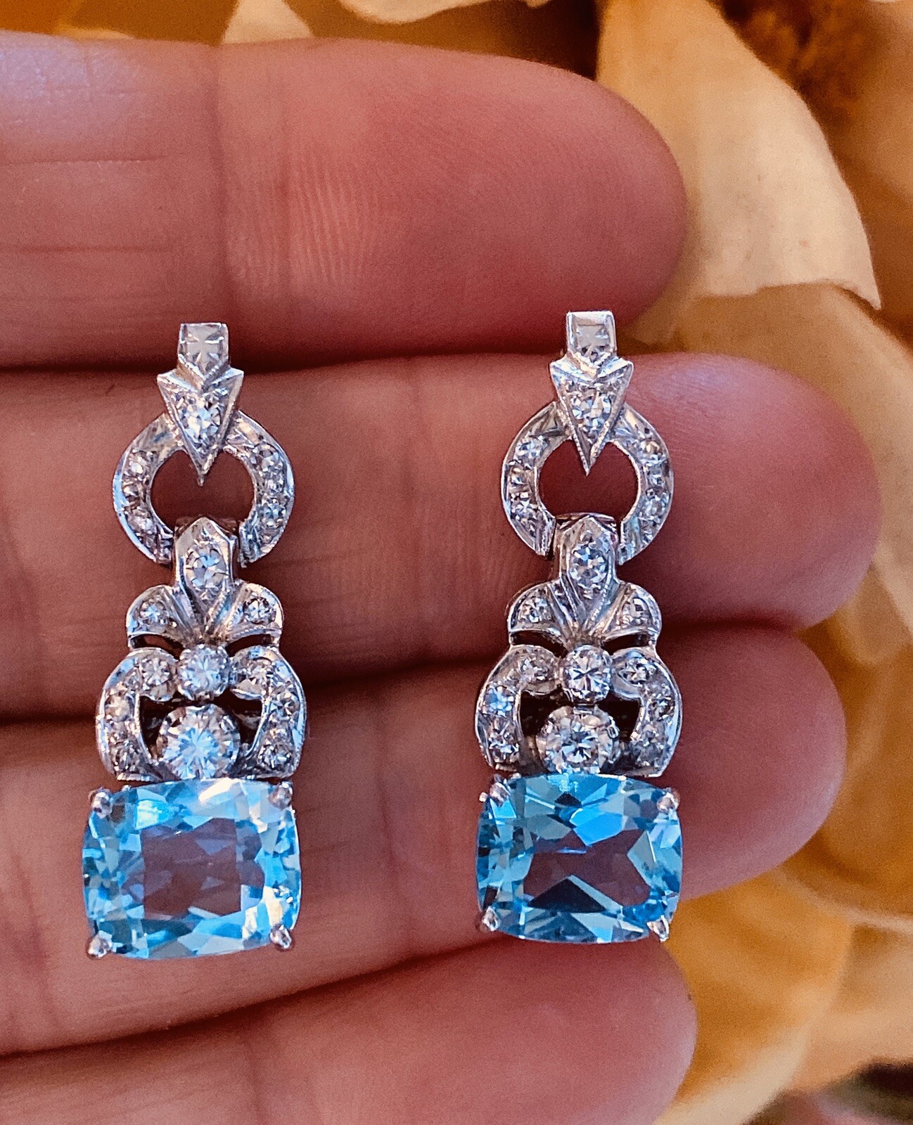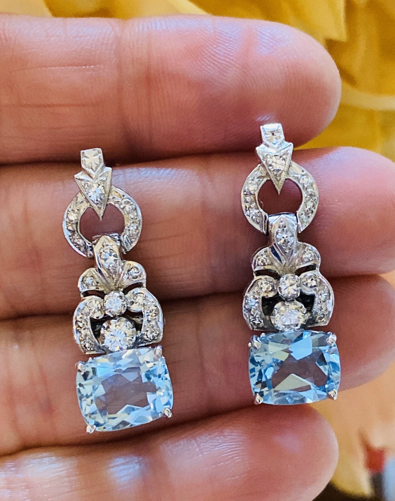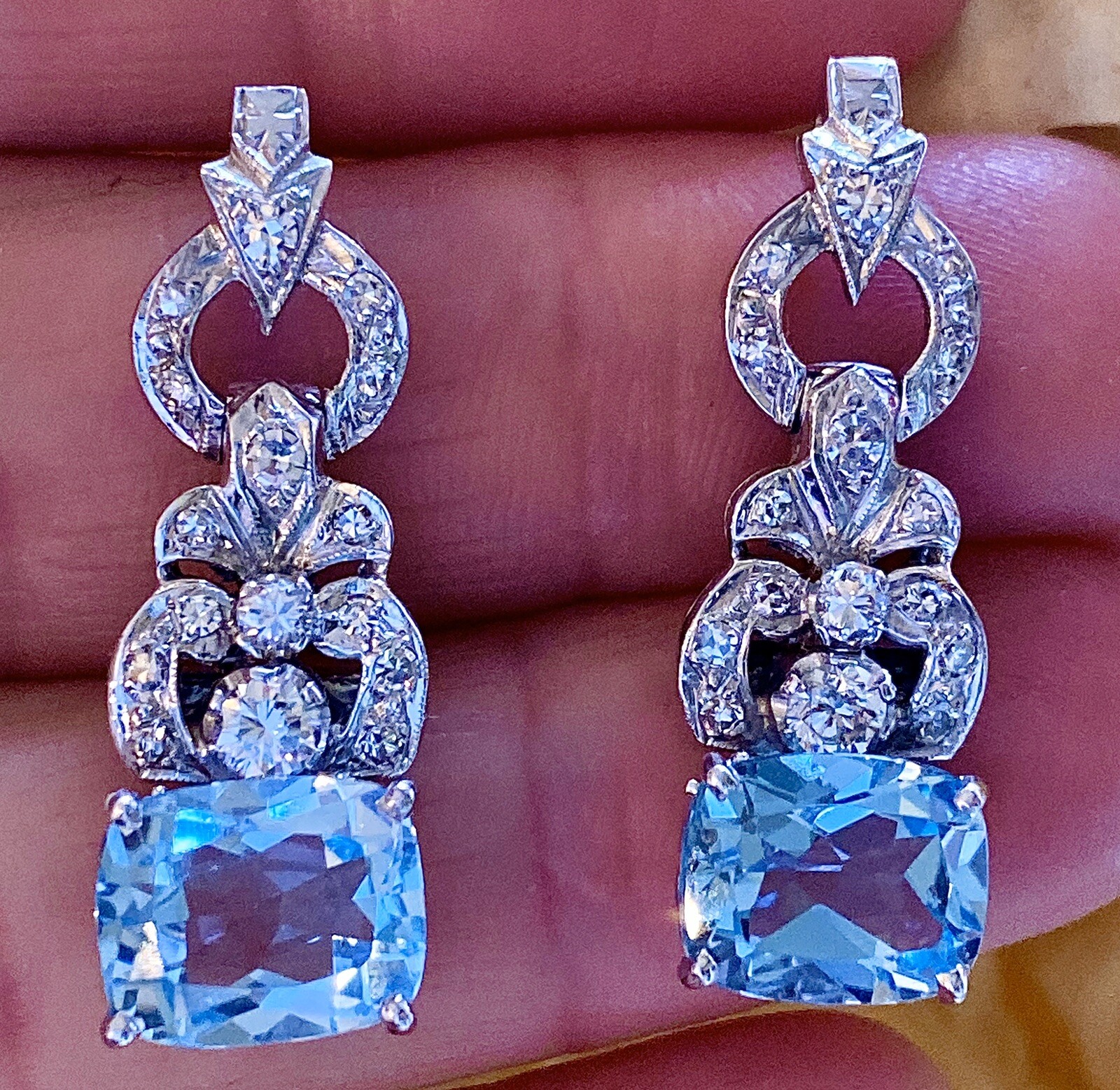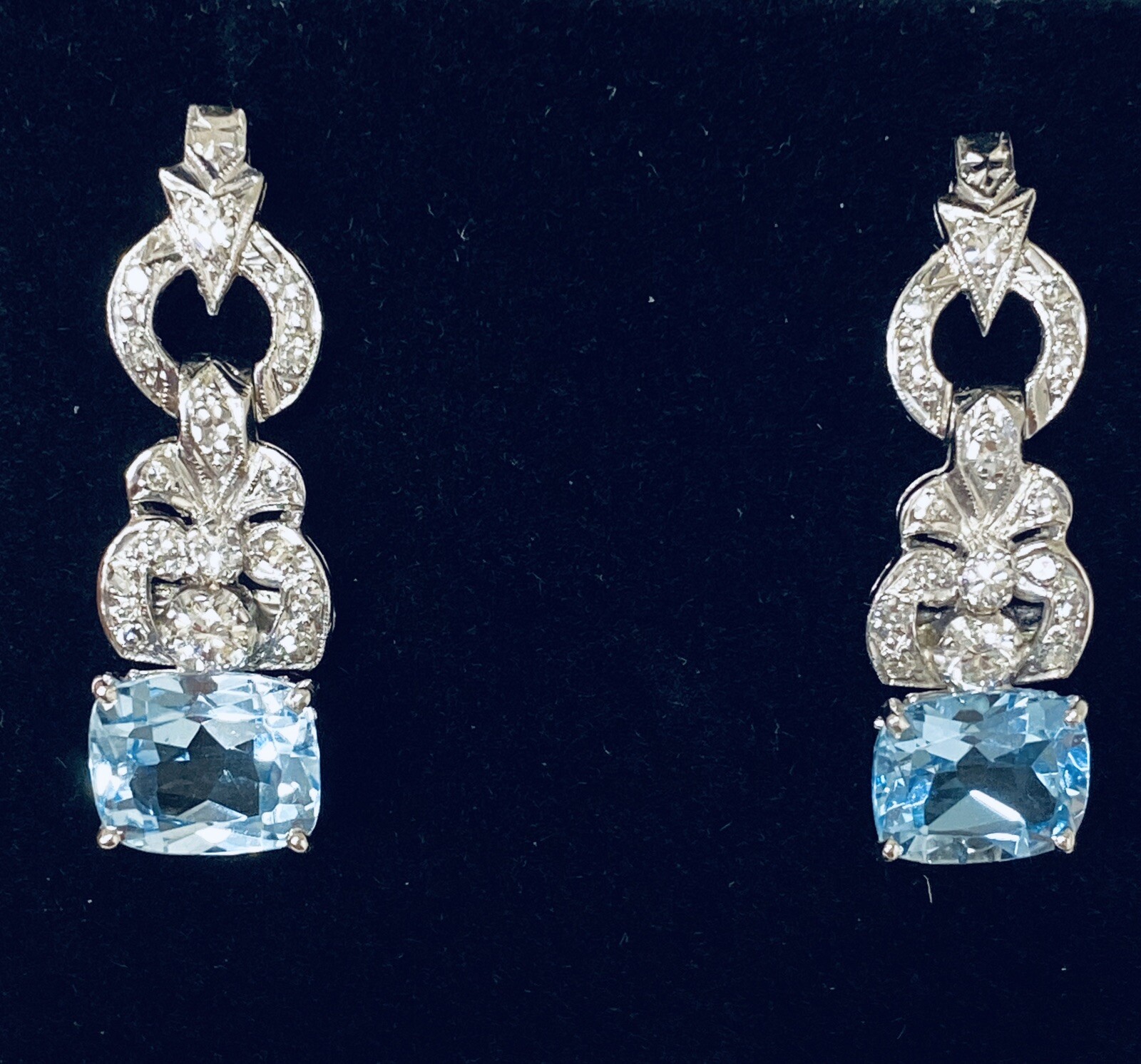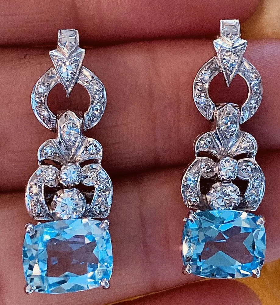 Stunning Vintage Estate 8.80ct VS Diamond Blue Topaz Dangle Drop Earrings