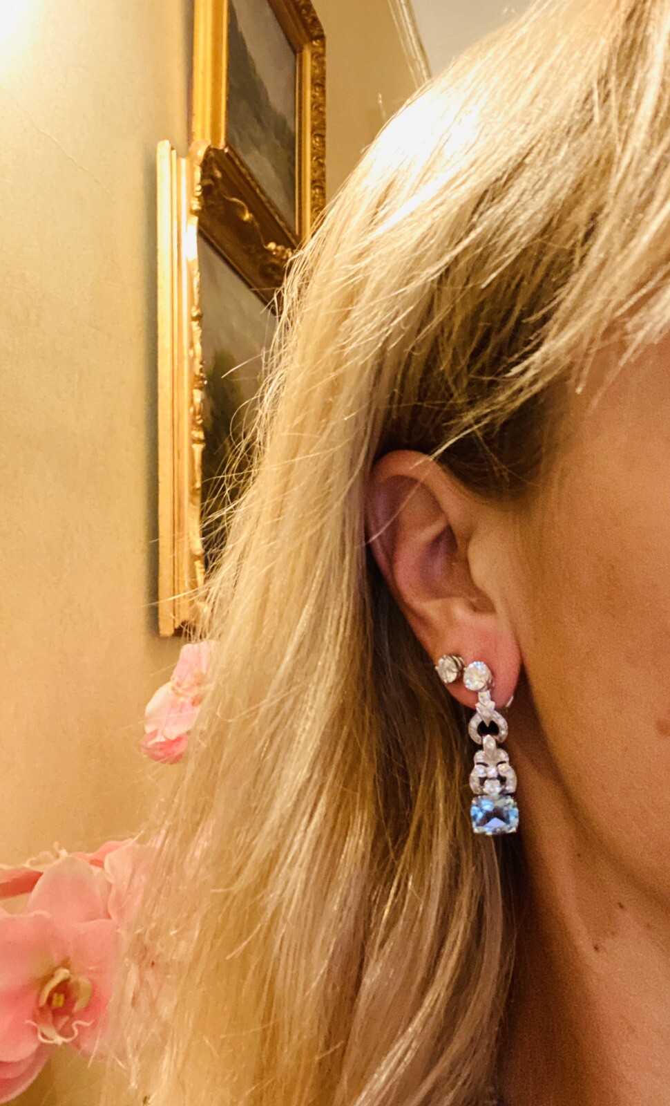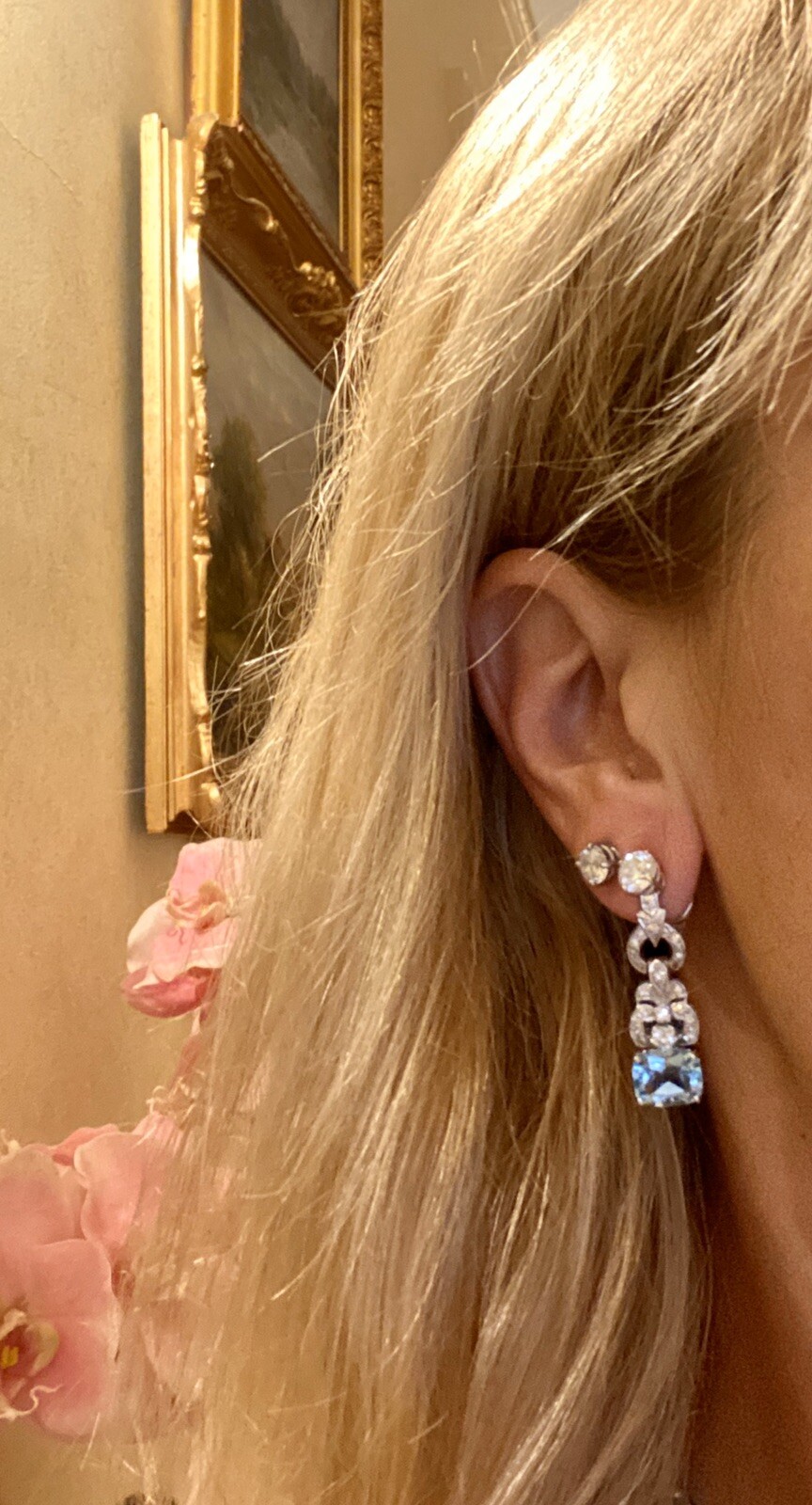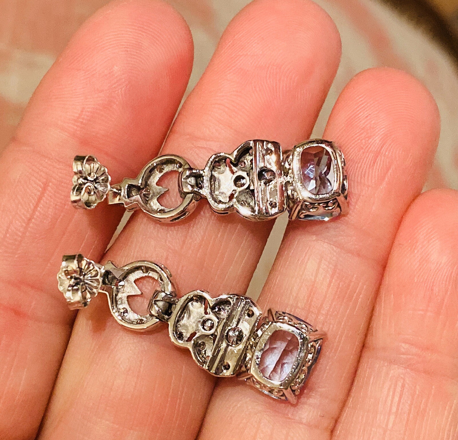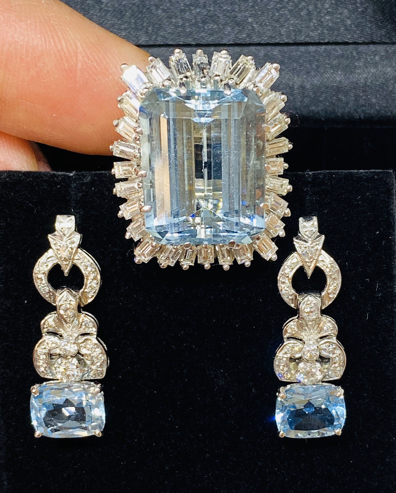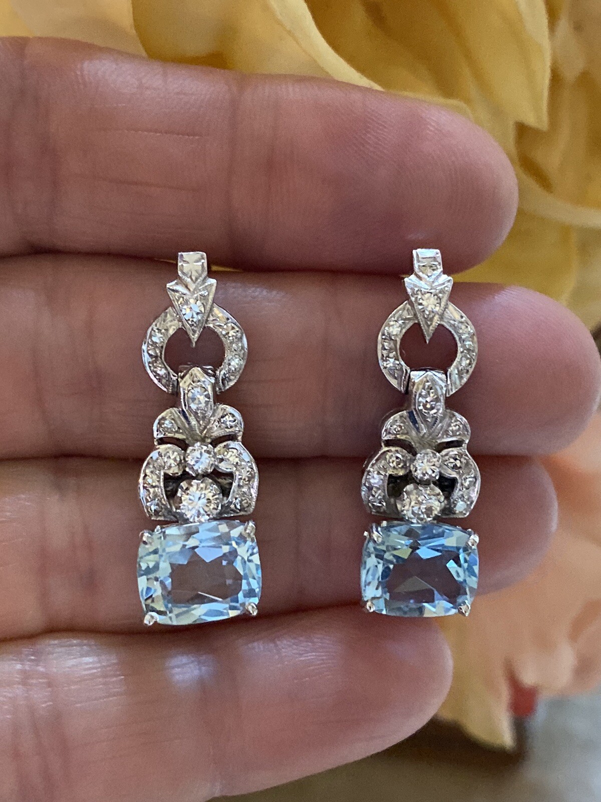 Stunning Vintage Estate 8.80ct VS Diamond Blue Topaz Dangle Drop Earrings
