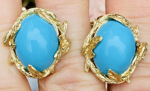 Vintage Estate Retro 18k Gold Turquoise G VS Diamond Drop Pendant Earrings