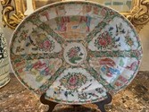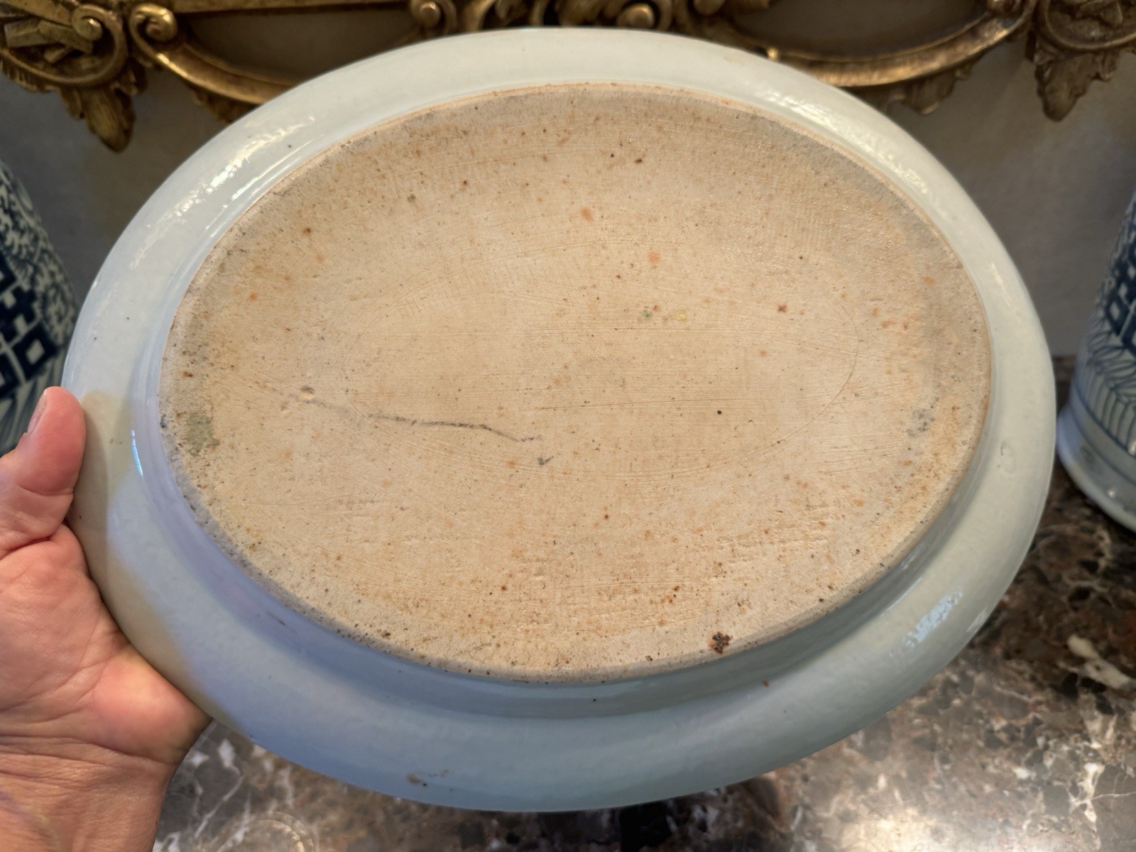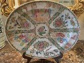 This Rose Medallion antique large platter, dating back to the 19th century, is a hand-painted piece of porcelain and pottery originating from China. With intricate multi-color designs, this original antique piece exudes a timeless charm that makes it a unique and valuable addition to any collection. Its size of 13.5 x 10.5 inches adds a touch of elegance to any dining table or display space, showcasing the craftsmanship and artistry of Chinese antiques from the 19th century.