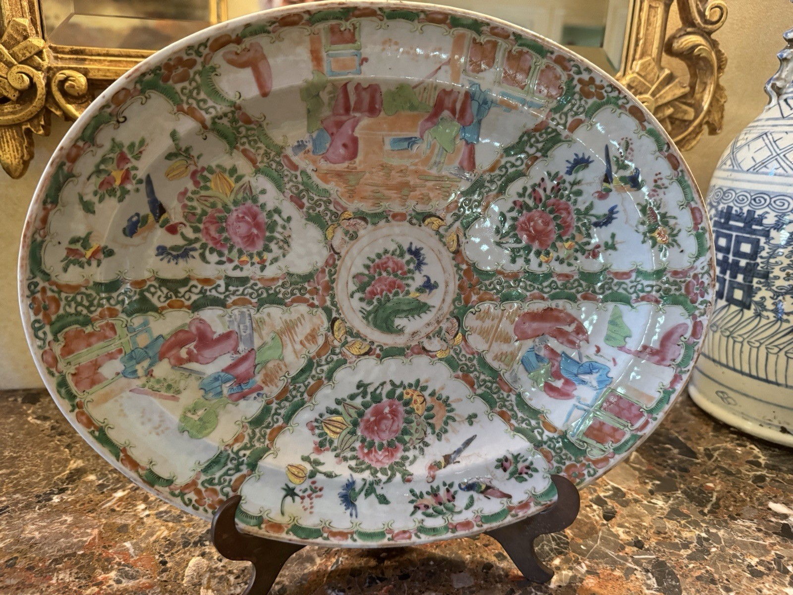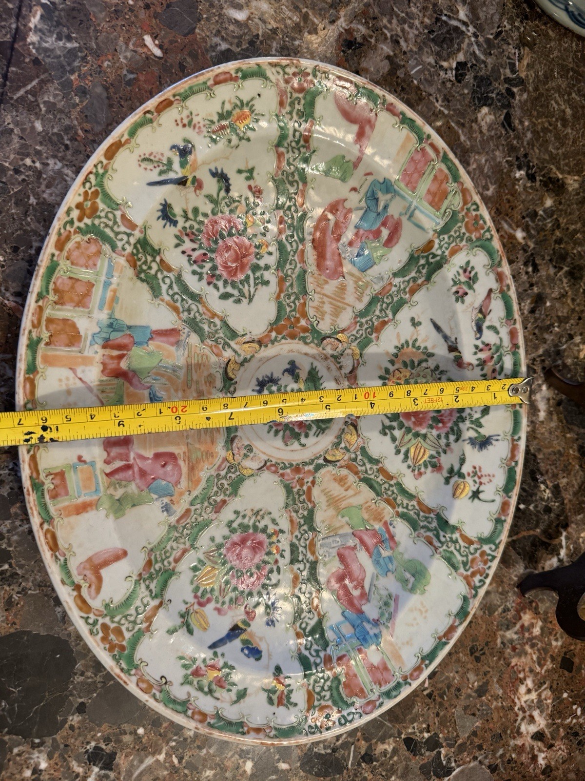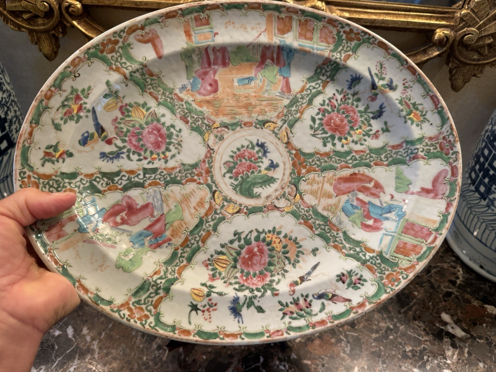 Rose Medallion Antique Large Platter 13.5 X 10.5? 19th Century Hand Painted