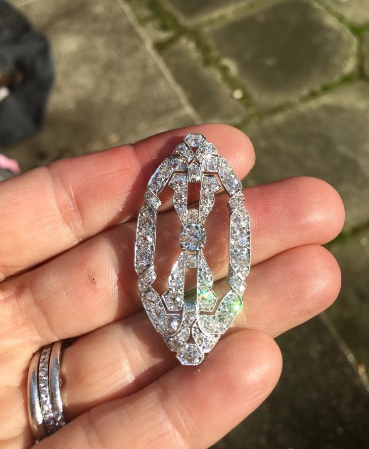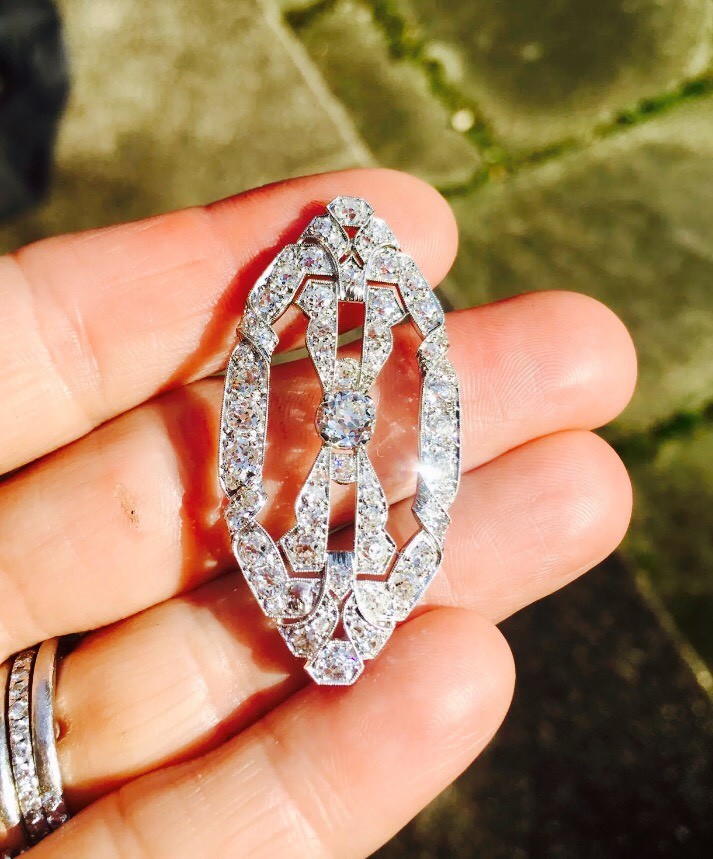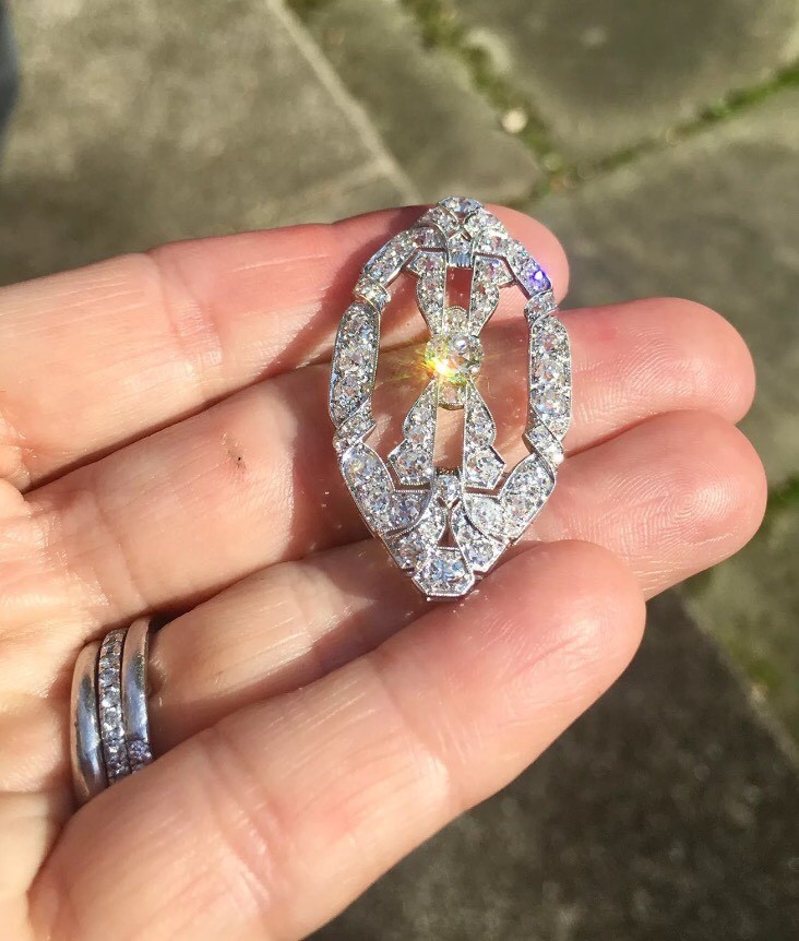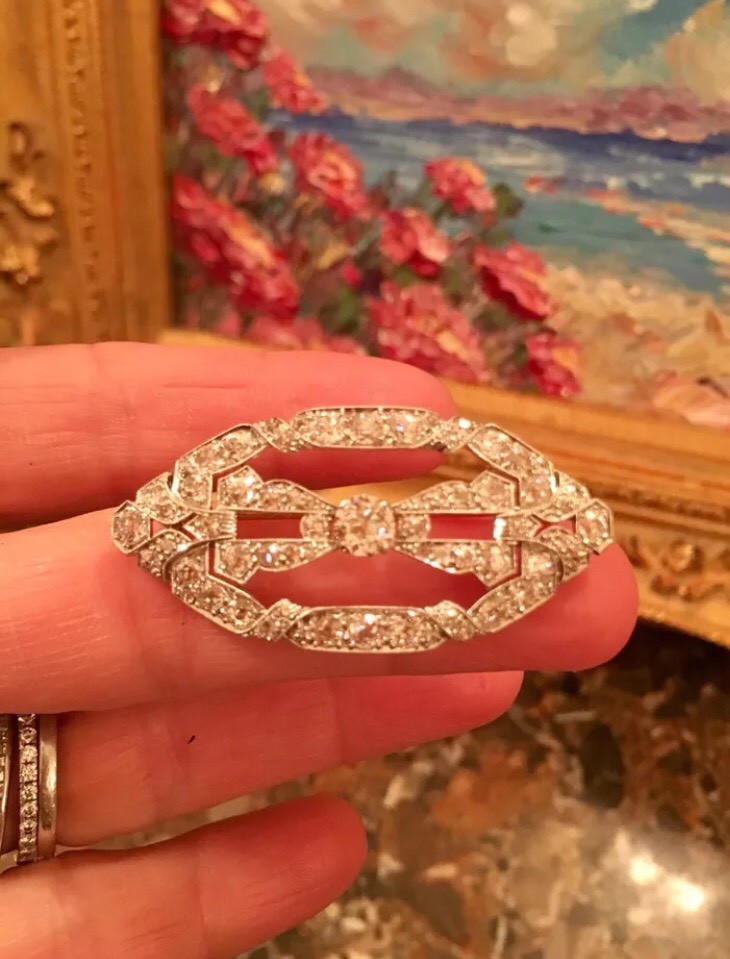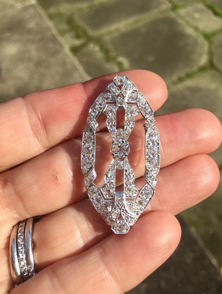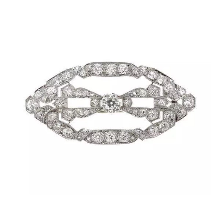 Stunning 1940s Retro Art Deco 4.00 ct G/H VS Diamond Platinum Pin Brooch Pendant