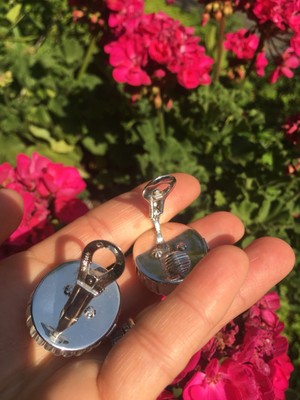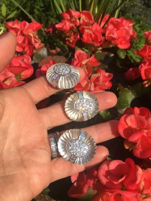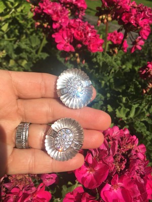 These beautiful earrings are part of a set (earring ring suite) of carved rock crystal and diamonds.