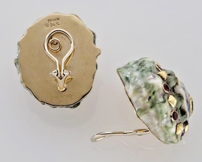 Stunning Trianon Estate 14K Seashell Gemstone Clip Earrings