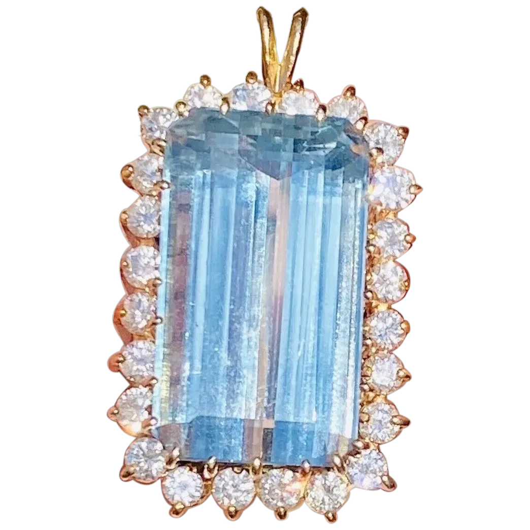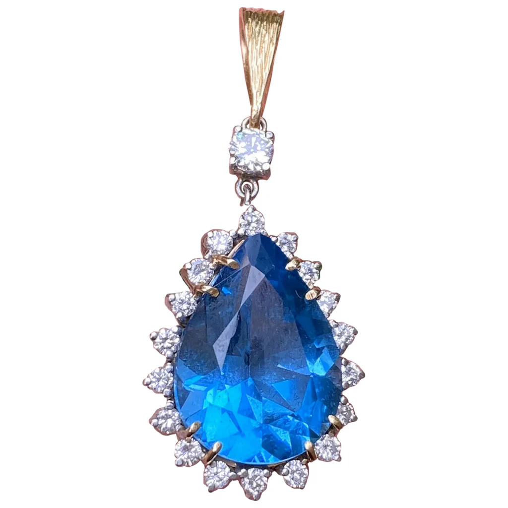 Vintage Estate 14K Gold 16.85ct London Blue Topaz 0.85ct Diamond Pendant 8.g