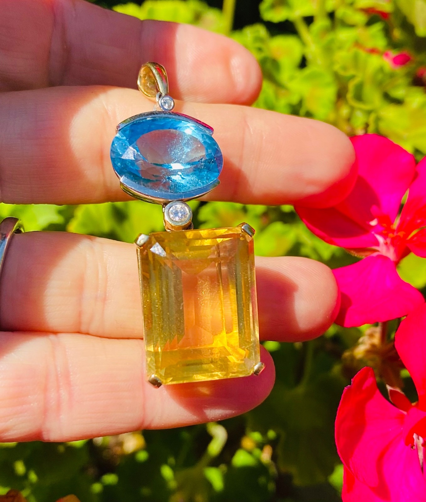 Vintage 14k Gold Blue Topaz Citrine Necklace Pendant