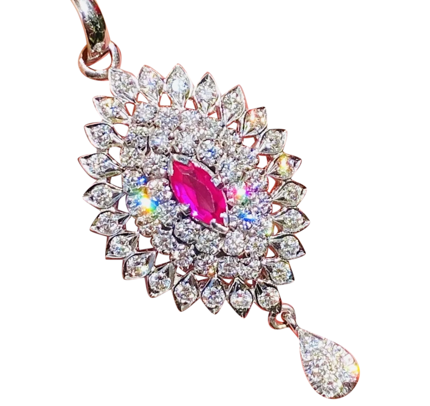 Vintage Estate 1950s 14k Gold E/F VS1 Diamond Halo Ruby Necklace Pendant Drop
