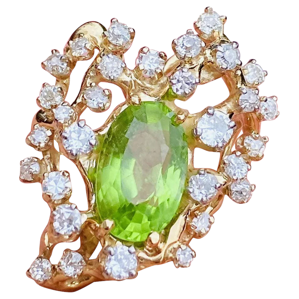 Vintage Freeform Retro 14K Gold 5ct VS Diamond Peridot Slider Necklace Pendant