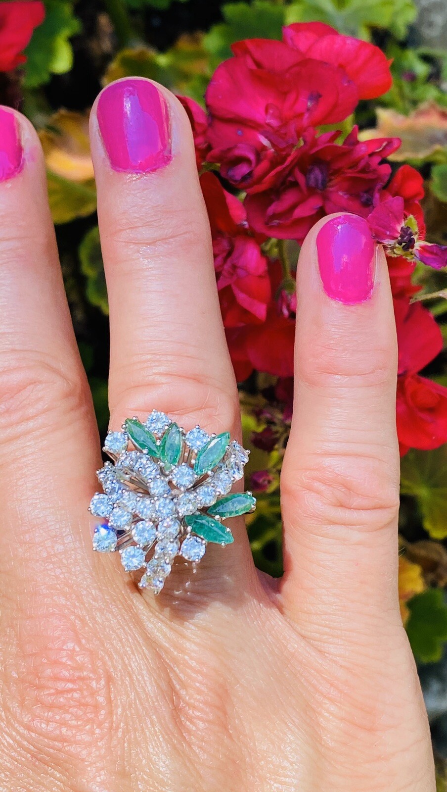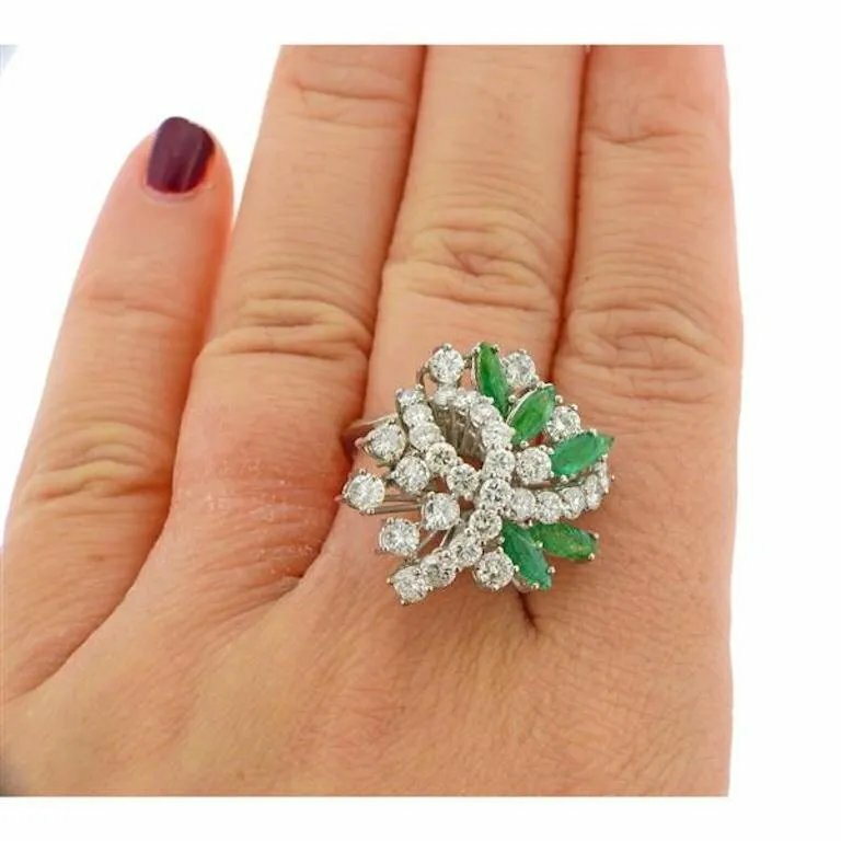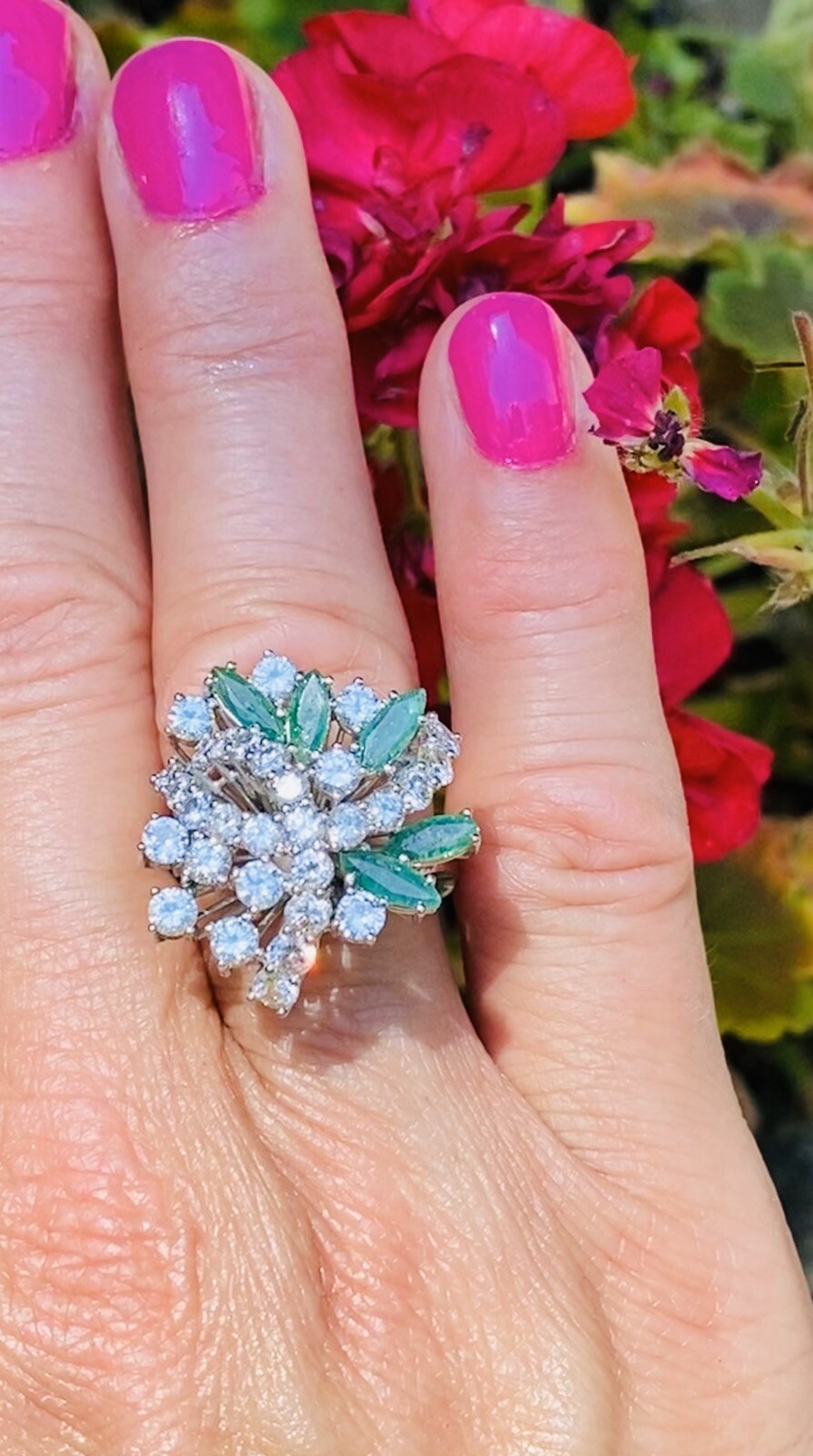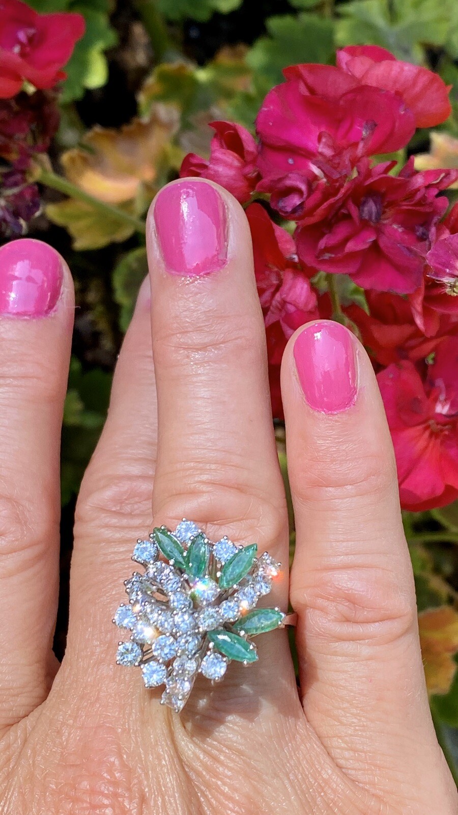 Vintage 18k Gold Retro 3.00ct Emerald Diamond Cluster Ring