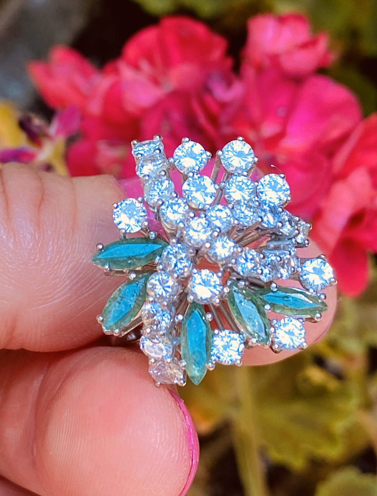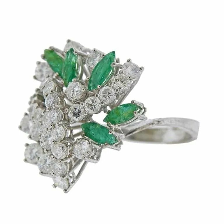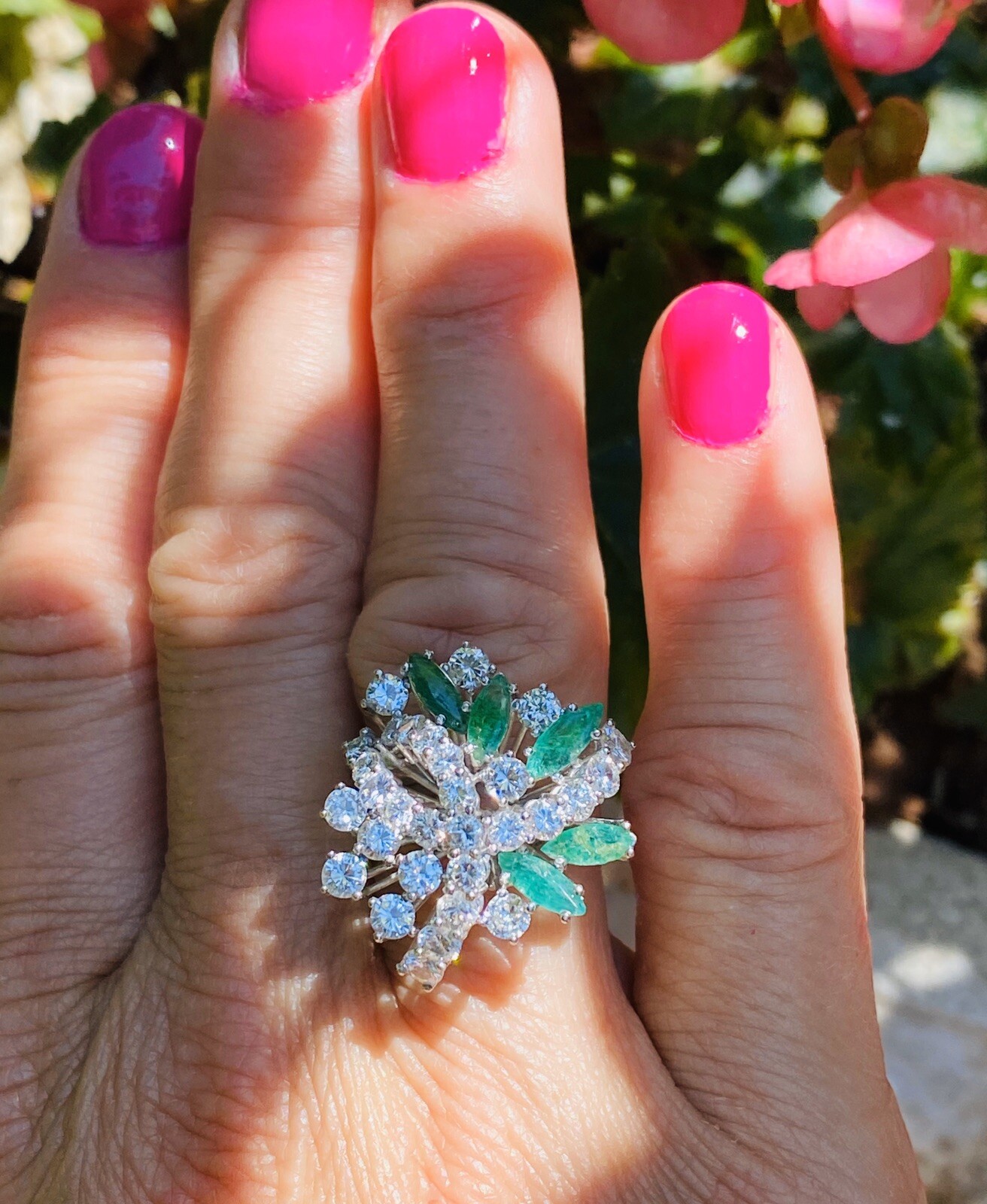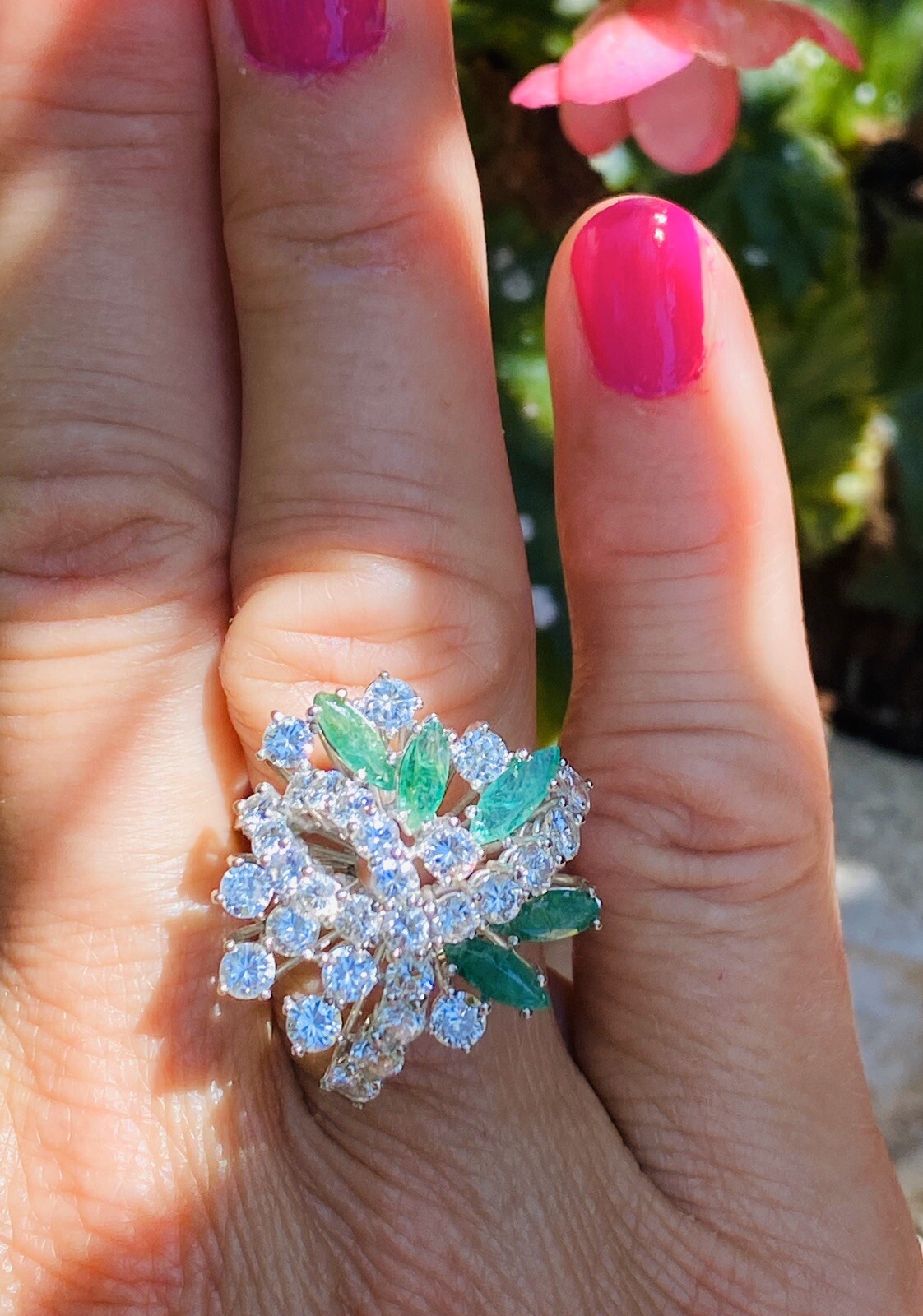 Vintage 18k Gold Retro 3.00ct Emerald Diamond Cluster Ring