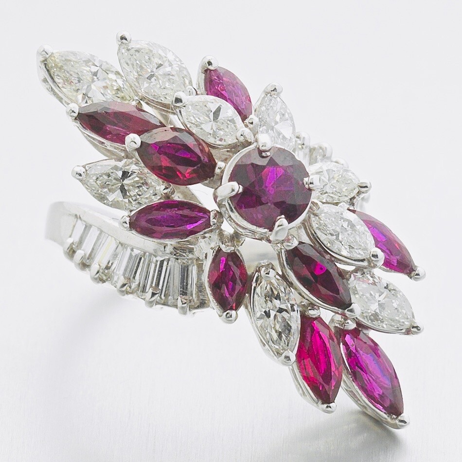 Vintage Midcentury 1950s Retro Platinum 4.50ct Ruby VS Diamond Ring