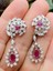 These stunning glamorous 1950s dangle pendant earrings are set in 14k white gold, and both feature diamond and ruby clusters with detachable dangle pendant enhancers for day to night wear.